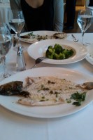 - Course #2: Loup de Mer – Sea bass served with broccoli. The fish was light (necessary after the heavy first course) and the broccoli was nice and buttery.