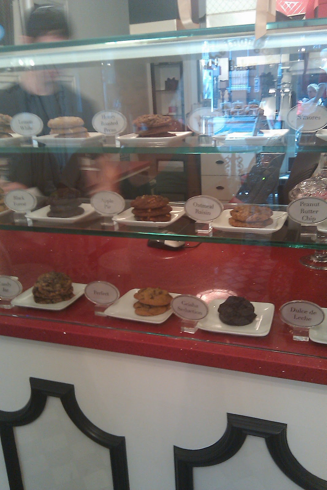 The cookies are neither large nor cheap, but don’t let that hold you back. We ordered three cookies for $6: the Friday Night Foosball (peanuts, pretzels, chex mix, and dark chocolate), champagne and strawberries (with huge chunks of fresh strawberries), and the Geisha Seduction (chrystalized ginger and dark chocolate). The cookies are so rich, you don’t need a giant one to satisfy your sweet tooth…but with all the amazing flavors, it will be difficult to pick just one.