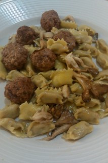 I made lamb meatballs (with oregano, cumin, paprika, and red pepper) and served them with the fresh pasta (which was INCREDIBLE – I’ll be back for more very soon), and hen of the woods mushrooms. Tossed it all with a lot of butter. Delicious. The executive decision has also been made that next time my parents visit, we’re going back to Eataly, stocking up, and cooking a nice family meal at my apartment – restaurants be damned!