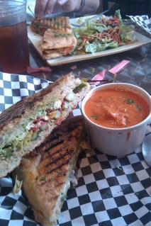 One restaurant in Savannah has continued to elude me. For the two or so years it has been open, I have heard all my family and friends talk about Starland Cafe (with location #2 under different name in the Telfair museum). Lamentably, every time I have tried to go either the line has been too long or it was randomly closed. Finally, I made it on Wednesday and it was as good as I had heard. I started with a cup of the tomato thai soup, which is made with squash, spices, and coconut milk. The flavor was not overly Thai, but the spices made it more exciting than a regular tomato basil soup. I followed that with my huge panini. Usually, I don’t consider it a meal without some sort of meat, but I didn’t even miss it in my greek asparagus panini. It was stuffed with asparagus, hummus, feta, pesto, artichokes, onion, fire roasted tomato, and creamy herb spread. It was by far the best sandwich I have had in months.