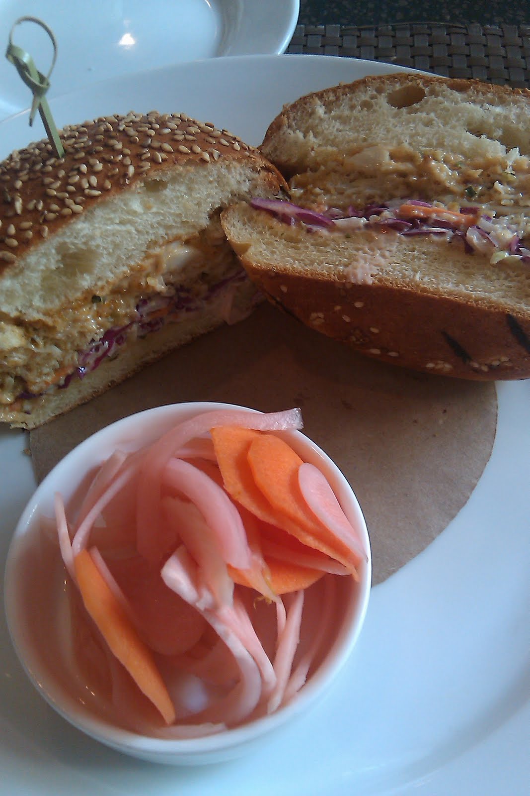 The food is the beach food you love and expect from summer on the East Coast but served on real plates. I walked in without a reservation, which would have posed a problem had I not been dining alone, amenable to eating at the bar. So I saddled up at to the bar and started scanning the menu. Everyone was sipping on some sort of cocktail, so I figured I would do the same. The $15 cocktail is what drove up my bill, but the pineapple ginger mojito was very good (and thankfully downed with enough time to metabolize before I had to care for an infant). I knew I couldn’t go to a chowder house without sampling the chowder, so I was happy to see that I could get a little taste with my main course for only $3. It was a small, teacup-sized portion, but it was just enough. It was not the chunky, ocean flavored chowder I was expecting, but it was still tasty enough. For my entree, I ordered the crab cake sandwich and was pleased with the result, especially the bowl of spicy pickled veggies on the side.
