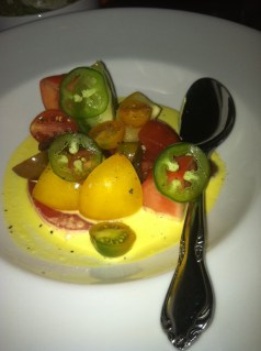 We started with an order of guacamole. The guac was good but unimpressive, non-spicy, and completely unadorned – for the purists. What came with the guac, however, is what deserves a write-up on this blog. The chips were actual fried tortillas. If they weren’t made in-house, they are buying them from some old Mexican lady frying them in her own kitchen because these did not come out of any bag from Gristedes. It also came with a side of two salsas – a spicy árbol chile and an almost sweet smoked cashew one that I could have poured over anything. The queso fundidos and ceviches looked good, but we opted for a lighter heirloom tomato salad with jalapenos and squash blossom crema. This was definitely more of a summer item, very light and refreshing. I loved the dish but it didn’t quite fit the rest of the menu.