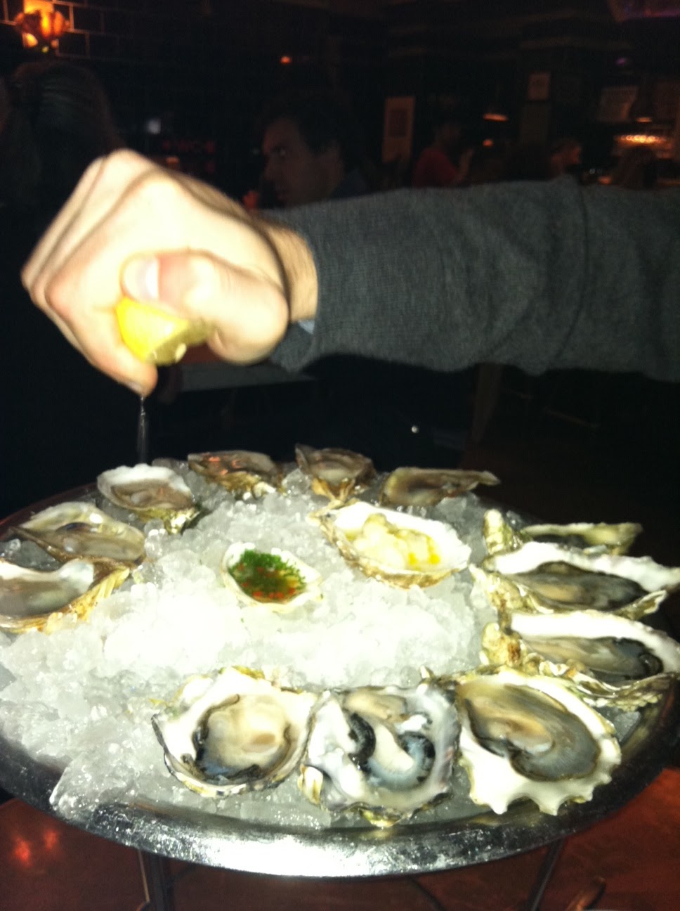 After watching the Dawgs secure their spot in the SEC championship, I left the bar to grab a glass of wine and an appetizer with Dan and Brian who were both visiting for the weekend. Brian was staying with his brother in Chelsea and has become obsessed with the nearby John Dory Oyster Bar so we decided to go for their happy hour special ($15 for a glass of cava and a half dozen oysters).