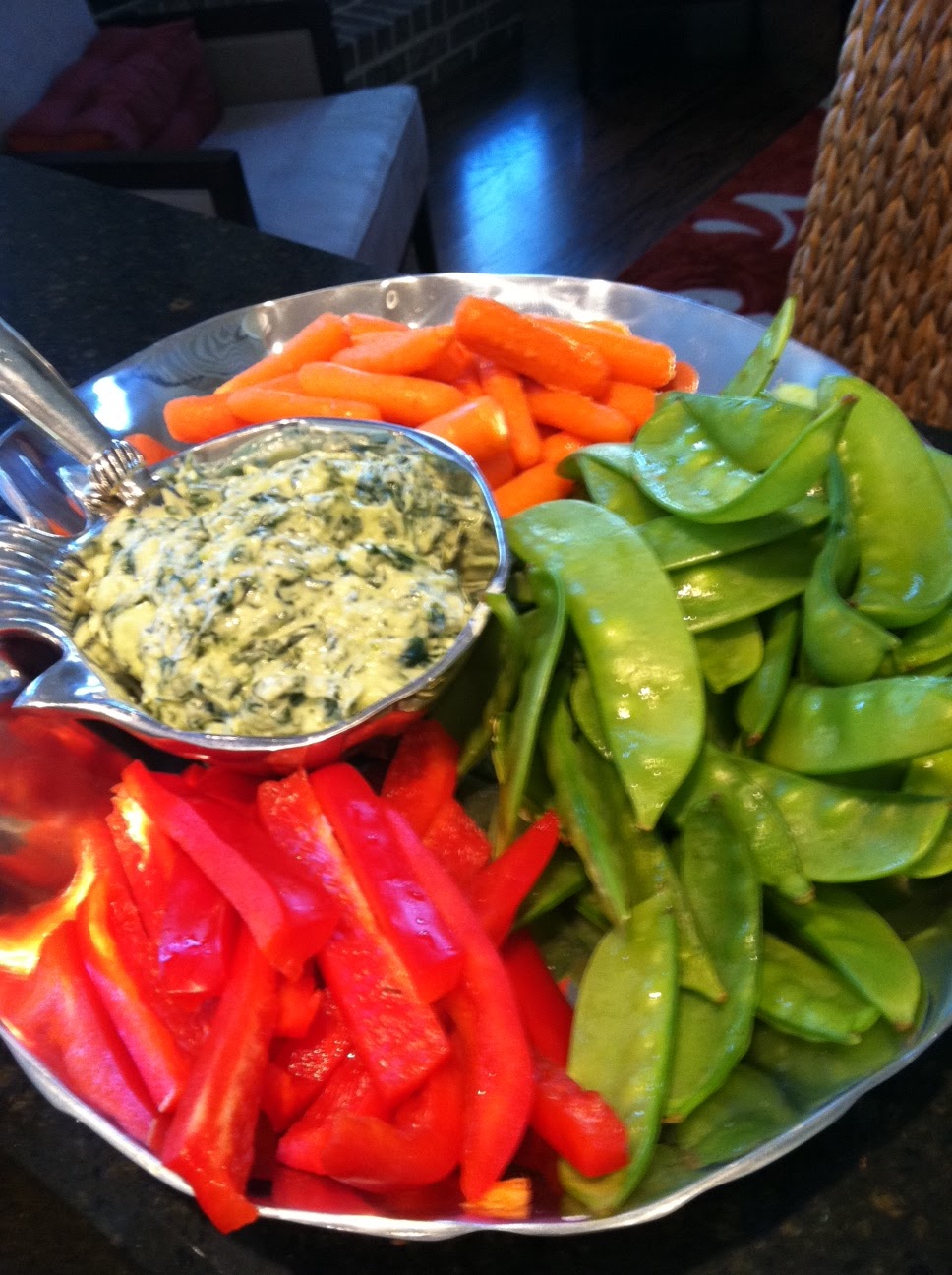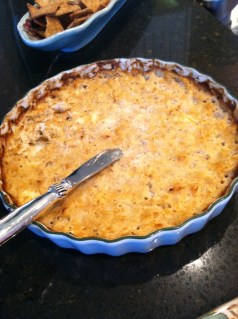 I usually prepare two apps, but this year I went with three. No one who was at this meal attended my Halloween party so I reprised the crab dip, this time adding extra Old Bay, hot sauce, and crab (other ingredients: mayo, lemon juice, cream cheese, and onion). The crowd devoured it. I think this one will be making a regular appearance at parties from now on. Appetizer number two was chorizo and manchego pinwheels. Three ingredients: puff pastry, browned chorizo, and fresh grated manchego (four if you count the egg wash). You couldn’t ask for an easier recipe, and my brother declared it was the best thing I’ve ever cooked – a bold statement from Mark Konter. If you get the legit Mexican brand chorizo, it will be quite spicy so if you’d like to tone it down a little, use hot Italian sausage. The third appetizer was a refreshing and healthy veggie dip – a nice change of pace after the other apps. I cooked onion, garlic, and spinach and then let it cool while I prepared the base of the dip. I pureed avocado, Greek yogurt, salt, pepper, and lemon juice and then folded in the spinach mixture (that I had chopped when it came out of the fridge). Since there was no mayo or sour cream, this dip was super healthy but had tons of flavor so I’ll be making it again when I feel the menu is filled with heavy food.