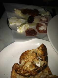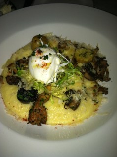 Neither of us had eaten so we decided to split a small entree and a meat and cheese plate. There are about seven cheeses and just as many meats on the menu. You can choose any combination for a total of 5 for $15, 7 for $17, or 9 for $19. The price was reasonable and I liked that you were able to mix meats and cheeses. For the entree, we ordered cheesy polenta with wild mushrooms, fingerling potatos, and a poached egg. Since it was the vegetarian entree, it was priced at only $14, but I don’t think they’re giving this meat-free dish enough credit. It was creamy and delicious. I’ve seen poached eggs make their way into plenty of dishes lately, but polenta is not one of them. Once again, it worked.