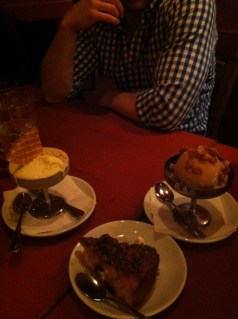 When it came to dessert we were originally only getting one scoop of olive oil gelato for all four of us. Somehow that turned into three full-fledged desserts and I’m not sorry at all. We stuck with the gelato, ordering a scoop of olive oil and a scoop of salty peanut. Olive oil gelato seems to be the vanilla ice cream of Italy that makes vanilla seem irrelevant. Next we ordered a polenta cake filled with dried fruit and served with whipped ricotta. Why whip cream when you could whip ricotta? Finally, we ordered banana gelato served on top of a brownie and covered with a shell of caramelized white chocolate and salted peanuts. This was probably my favorite. When you read the description, it doesn’t sound all that much different from what you serve in mass quantities at a sleepover, but they just make it better.