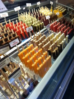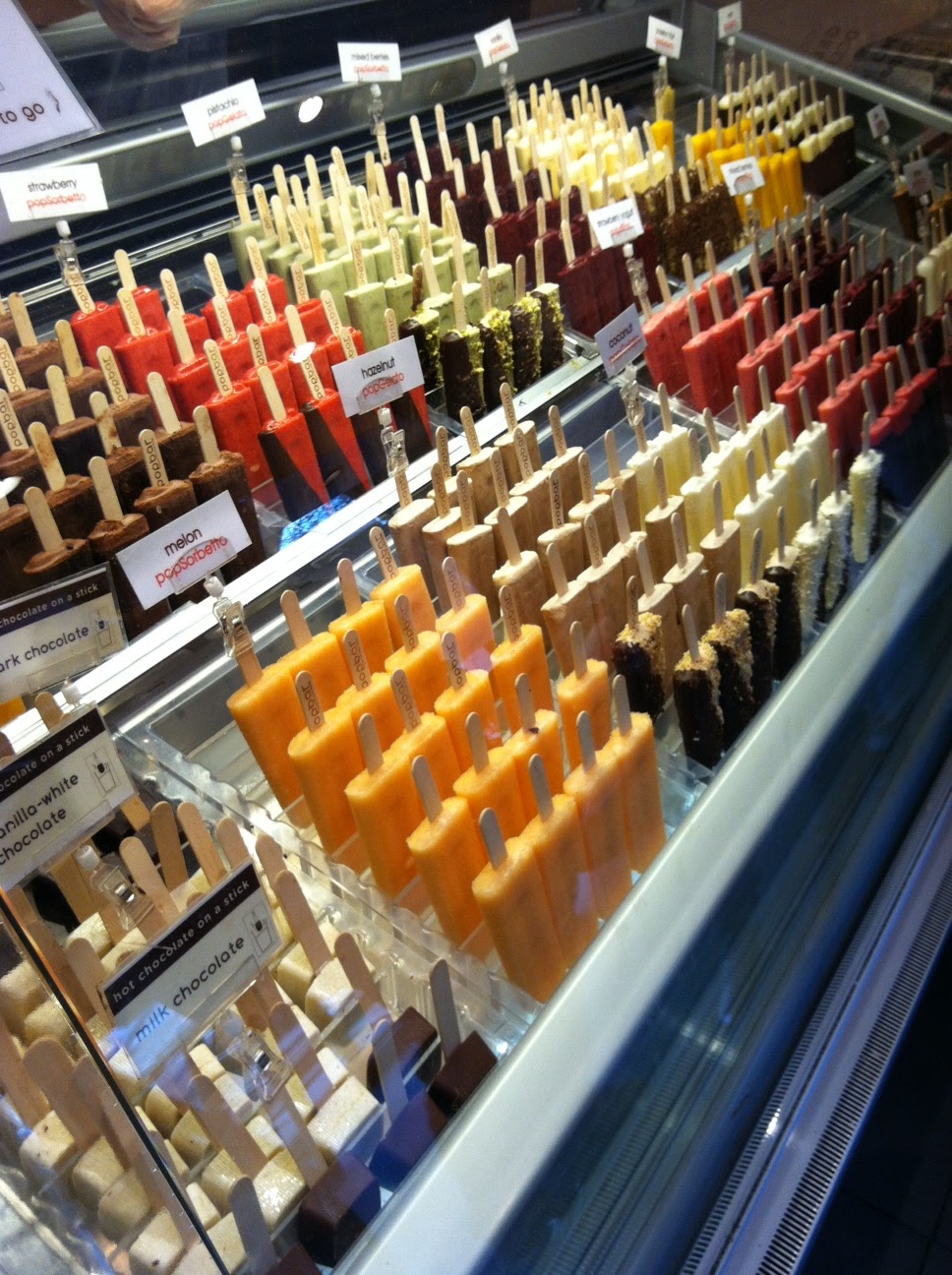 After walking around the West Village, Podz and I decided to end the day with a stop at Popbar. Popbar makes gelato, yogurt, and sorbetto popsicles that they then hand dip into the chocolate and topping of your choice. Podz chose hazelnut gelato with dark chocolate and coconut flakes, while I chose mixed berry yogurt in white chocolate with coconut. I’m not usually a white chocolate girl, but it worked with the slightly tart berry yogurt. It’s a little gimicky and there aren’t very many toppings to choose from (just the coconut and a couple nut varieties), but the quality of the popsicles was good. It was a fun thing to do, but once it gets warmer I see myself going to Mr. Softee before paying $5 for one of these again.