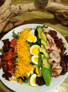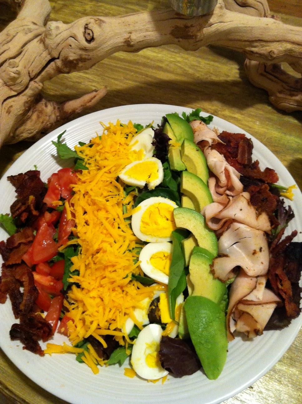 I love how you can present this salad with each topping in its own little row – letting the colors spread out like a rainbow – red to orange to yellow to green with a few others in between. I haven’t put ranch dressing on a salad since the beginning of high school, but something about it just felt right about using it this time for my retro supper. The cobb may seem old school when you see it on a menu, but I found it completely satisfying. There’s a reason this salad has stood the test of time.