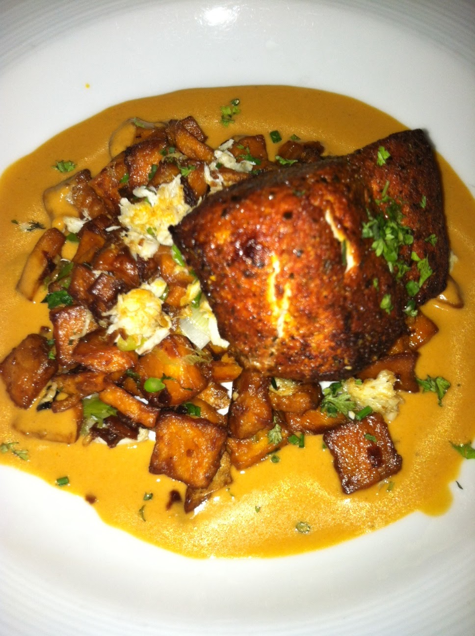 The fish was perfectly cooked and my swordfish steak managed to flake apart and not dry out as is often the case. It was blackened and served over a sweet potato and crab hash and a red curry cream broth. I liked having the sweetness of the hash to take down the spiciness of the blackened seasoning. I actually preferred eating the sweet potatoes and crab separately since the potatoes have a strong flavor that can drown out the crab. You probably know Blue Water Grill serves great fish, but when true seafood-only restaurants are harder to find, it’s worth repeating.