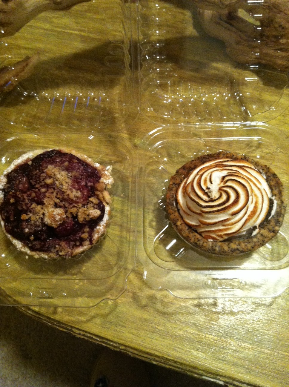 After meeting friends in Flatiron, I decided I deserved a pie (or two) so I stopped into Hill Country Chicken for a sweet treat.  I couldn’t decided which one to get so I rendered the decision unnecessary and got both.  First I tried the sour cherry for something truly fruity.  I enjoyed it, but it was totally upstaged by the special of the month: strawberry lemonade pie with a meringue topping and poppyseed crust.  It was the perfect combo of tart and sweet.