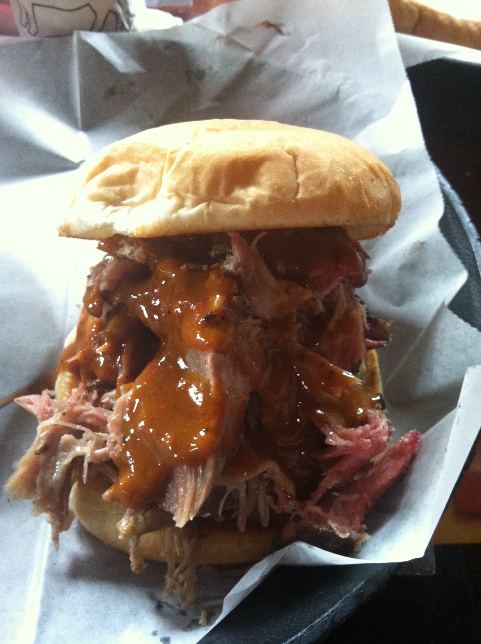 | I spent a lot of my vacation trying to consume all my favorite foods from home. This is a spectacular pulled pork sandwich from the Smoke Station. I’m sorry, but the BBQ in NYC just can’t compare. |