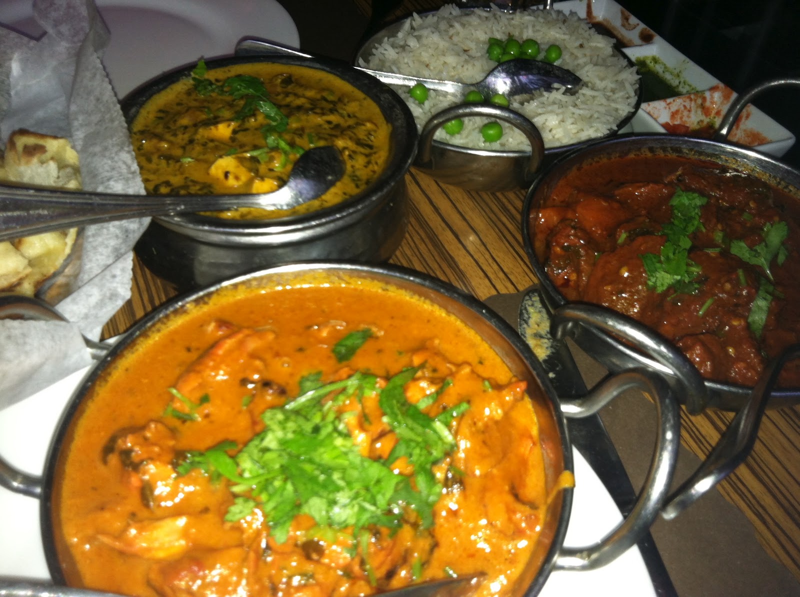 For the rest of the meal we ordered a ton of food knowing we would be bringing home the leftovers. We just couldn’t help ourselves. I thought Southerners had the market cornered on butter, but two of the dishes we ordered (chicken butter masala and methi mataar malai) were filled with it, which of course made them extra delicious to me. We also ordered lamb vindaloo and naan so that we could sop it all up. The food wasn’t as spicy as usual, but the flavors were all there.