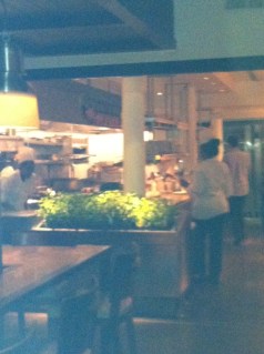 The decor is simple and segmented. One area is filled with traditional two- and four-tops while another (where we appropriately sat) featured long farm-style group tables. I thought the blue lights behind the bar were a little dated, but I absolutely loved the pristine open kitchen. I kept sneaking peaks at the copper pots and white subway tiles that lined the walls and hung from the ceiling. I loved watching the chefs grab a handful of herbs from the garden that divided the kitchen from the dining area. It doesn’t get fresher than that.