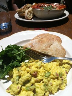 My scrambled eggs with asparagus, prosciutto, and fontina were perfect, especially when piled on top of crunchy toasted flatbread. Asparagus really should be incorporated into more dishes instead of just roasted and served on the side. Ira scarfed his baked eggs so I’m assuming they were good, but he’s a germaphobe who doesn’t share food so I wouldn’t know firsthand. Everything always seems so pricey in the West Village so I was happy to see my bill with tax and tip came to about $11.50.