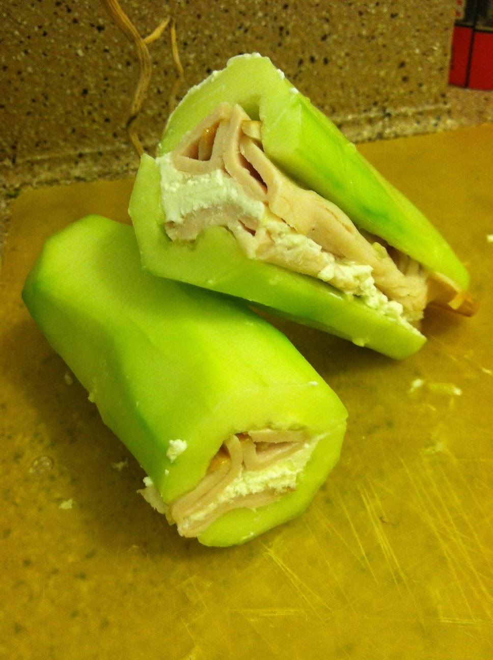 The main identifying feature of a sub is the bread. A perfect hoagie roll defines a sub…so how do you make it low carb? I did it by using a cucumber instead of bread. Simply hollow out the watery, seedy middle part and fill the cavity with whatever you like. As long as you don’t overstuff, it’s an easy lunch to bring into the office. I made mine with turkey and goat cheese and felt really good about my lunch choice. I’ve got a couple bridesmaids dresses to squeeze into soon and if I keep eating like this, I’m pretty confident fit won’t be a problem. Some other ideas for this recipe: