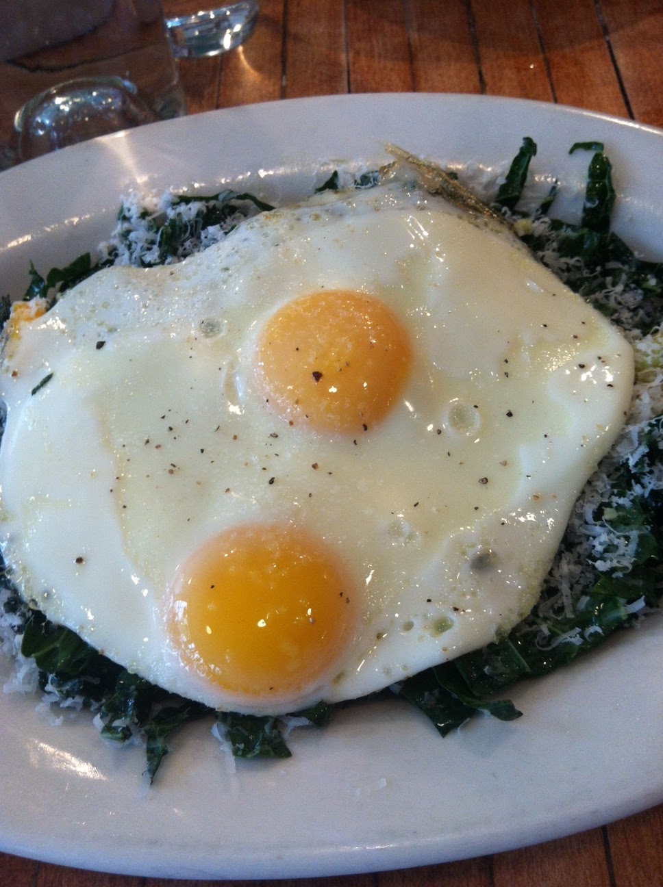For my entree, I had the kale salad with parmesan and summer squash, topped with two baked eggs. It was almost like a kale caesar salad. Maybe I’m deceiving myself because it wasn’t carb or bacon/sausage heavy, but it seemed healthy. Could it be? It tasted too good to really be healthy, but it wasn’t a mound of french toast so I’ll stick to the not-bad-for-you story.