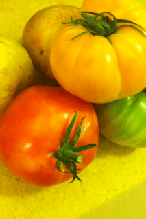 | Summer produce! I went through all these heirloom tomatoes and plumcots (I love all those plum variations) within 24 hours. |