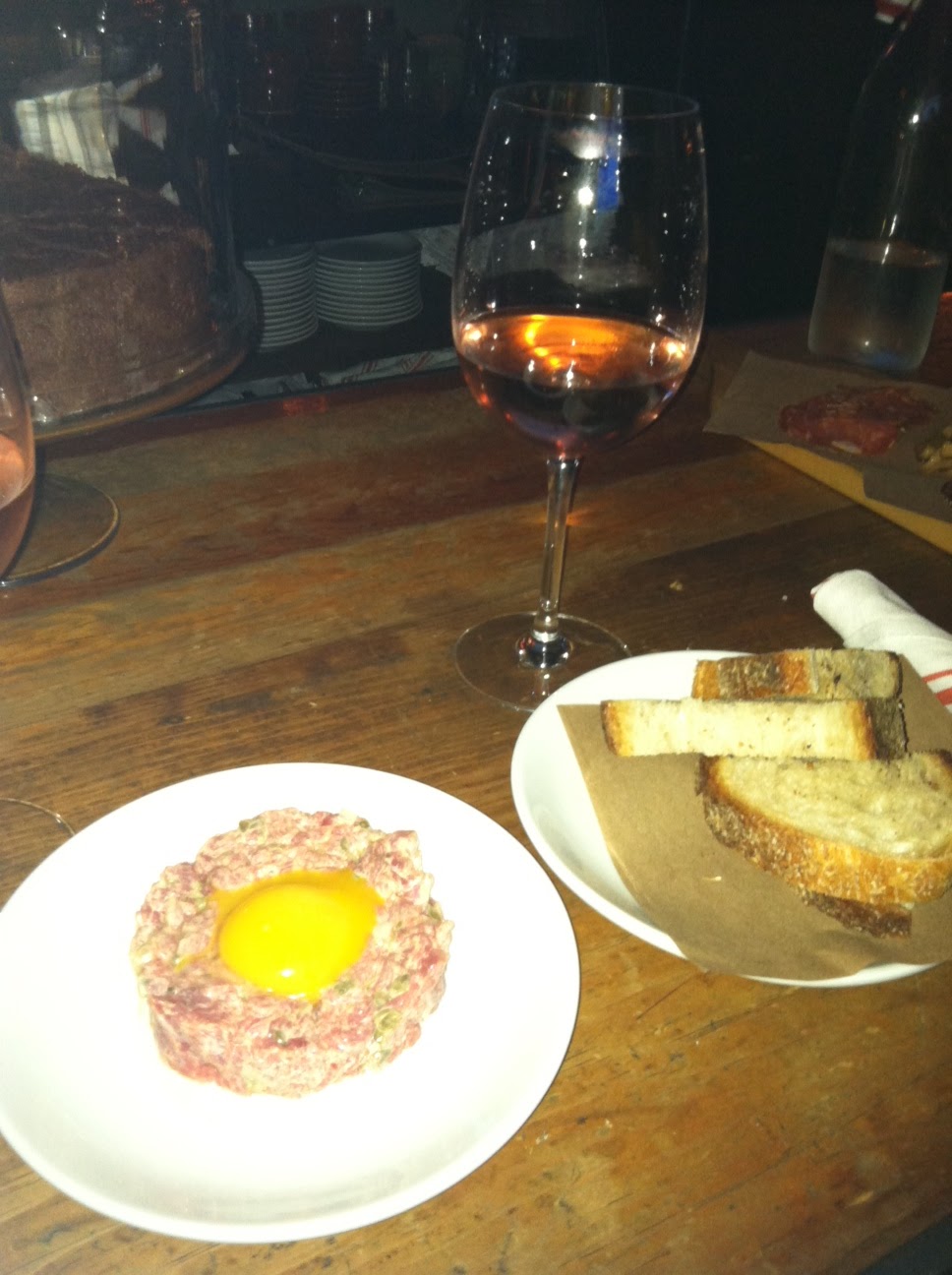 The Cannibal makes it easy to enjoy beer. If a place claims to know beer, you hope they’re not serving Bud Light. Here, the entryway is lined with refrigerators that hold all kinds of beers you’ve never heard of. These are the kind of beers with funky labels and names. Next, you don’t want froo froo food when you’re drinking beer. You want meat. And as the name would imply, the menu here is meat-centric and includes a pigs head cuban, tartares, and lardo toast. Other than the radishes or corn, you won’t find any vegetarian friendly dishes. The menu is printed on butcher paper, a nod to the in-house butcher who churns out beef jerkey and other nibbles that you can grab to go. We didn’t have time for a full meal, so we shared just one small plate of the lamb tartare. It was a nice take on steak tartare. Instead of garlic providing the spice, this was chopped with jalapenos and in lieu of chopped hard boiled egg, this was topped with a large runny egg yolk. My mother, a woman who has never eaten tartare and is leery of any raw food other than the california roll, polished off half this dish. Thank you, Cannibal, for making a convert out of her.