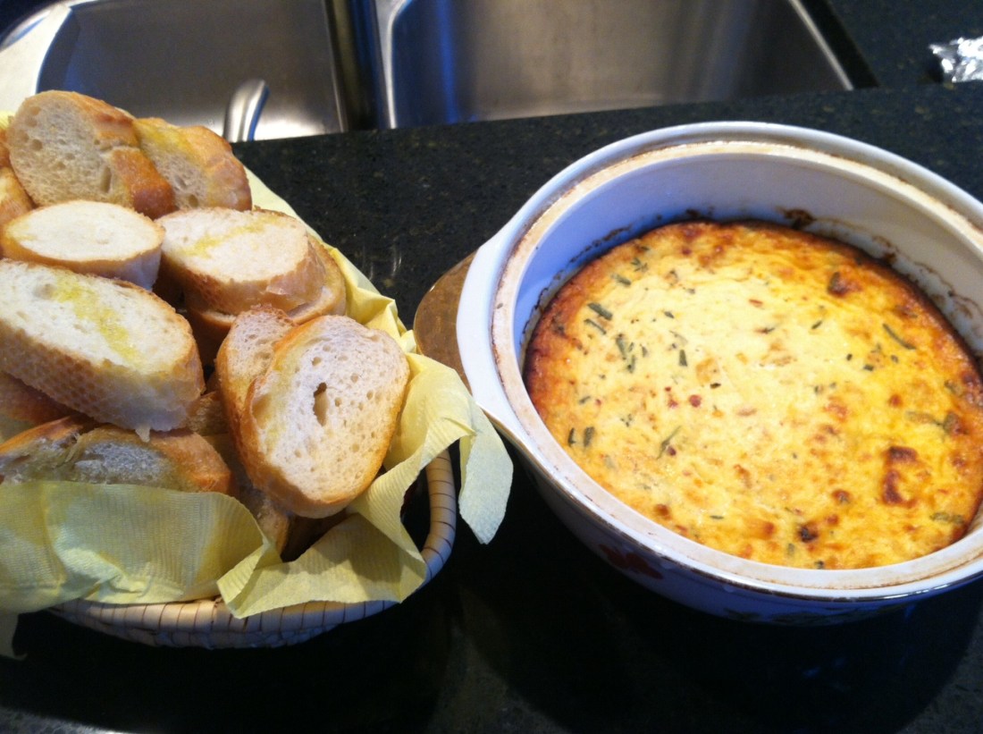 You could actually pick out the individual flavors of the lemon zest and red pepper flakes as well as the herbs – oh, the herbs! Rosemary and thyme are so perfect for Fall/Winter and the flavor of the fresh stuff makes a real impression. I know you won’t believe that a dish made entirely of cheese won’t weigh you down, but this is not a heavy appetizer. Ricotta is a lighter cheese by nature and once the egg is added it poufs up like a souffle. In case you didn’t know, souffle is French for “classy” so make this and you’ll be one fancy bitch.