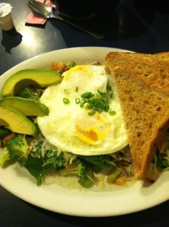 Honestly, I would have been happy to eat here just for the name, but they do the kind of hearty breakfast that will start your day off on the right ski. There is a pretty extensive menu of eggs done every which way along with pancakes, french toast, and a massive sticky bun. As a savory breakfast fan, I went with Marie’s Special, sauteed veggies (spinach, onion, bell pepper, tomatoes, broccoli) topped with two over easy eggs and a little cheese. I added avocado because eggs + avocado is one of my new favorite combos.