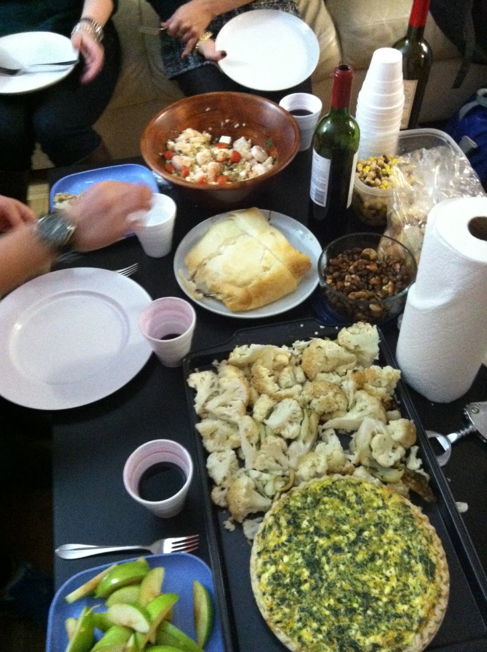 | I only got a pic of the whole book club spread, where mine is in the wooden bowl all the way in the back, unfortunately. Don’t worry, it was all gone by the end of our meeting! |