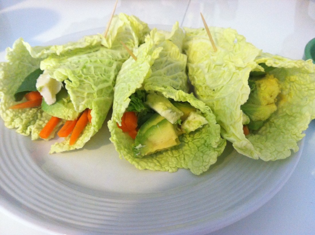Savoy cabbage: it’s not just for cole slaw anymore. I found that it is a great stand-in for lettuce when it comes to making wraps. Because it’s thicker than lettuce, the leaves tend to come off the head whole, without tearing, which means none of your filling will fall out. No messy spillage makes me even more eager to make healthy veggie wraps as a side dish.