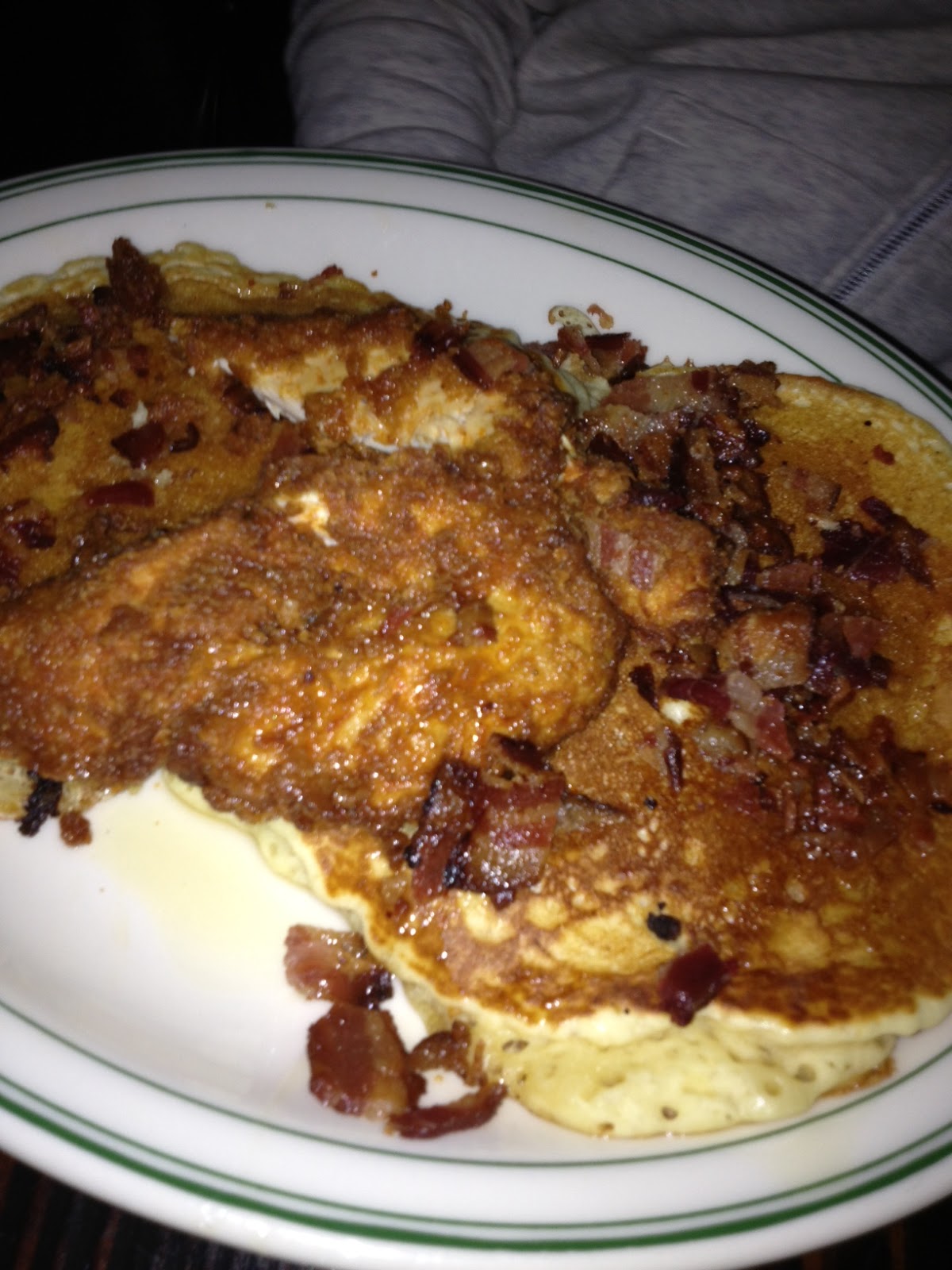 For the food it’s no surprise we started with an assortment of pickles, my favorite of which was the spicy green beans. There were several smaller items I wanted to try so we went the sharing route and ordered one entree and several sides/apps. Chicken and waffles is probably the most popular Southern dish to emulate right now so I was happy to see a new riff off it: pancakes. That’s right, we had chicken and pancakes. The pancakes were sweet and the chicken was spicy (with Chick-fil-A style breading – gah) and the bacon sprinkled all over the plate was nice and salty. Yum. It didn’t even need any sort of syrup or honey. For the smaller plates we ordered fried green tomatoes that had grits in the breading, a great touch but the tomatoes should have been cut a little thicker to compete. The collards were mixed with their pickled carrots to add the vinegar flavor I’m used to adding myself at the table. Finally, the side of mac and cheese was massive and easily could have been an entree itself. It was made with sharp white cheddar and was super creamy and delicious.