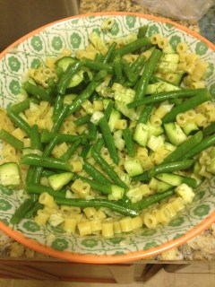 I changed it slightly by switching the orzo for ditalini. Ditalini means “little thimbles” and they are these adorable mini tubes. There are no ridges to catch the sauce, but since this dish is virtually sauce-less, it’s the perfect time to use the cute pasta. The veggies in this dish – green beans, fennel, and cucumber – are full on springtime and the sauce should mirror that by being simple and light. I didn’t have white balsamic like the recipe called for but thought the champagne vinegar worked very well. The recipe calls this sauce a pesto, but a pesto is made with nuts and cheese. I didn’t add any nuts, but after taking the pic I did add a little grated cabot clothbound white cheddar. I just couldn’t help myself – it’s not a pasta dish without just a little cheese.