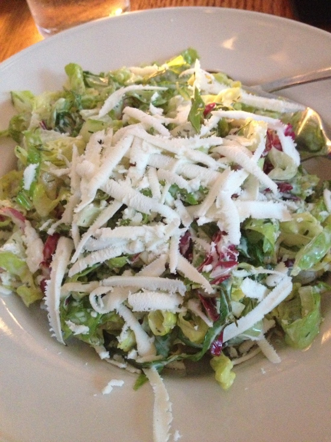 We may have eaten quickly, but not so fast that I missed how good the food was. We split the anassa chips, fried zucchini and eggplant slices served with super thick tzaziki. This dish is dependent on good tzaziki (done) and a kitchen that knows not to over-batter the chips (done). Raych and I both got appetizers as our main course and after splitting the chips and munching on the complimentary bread and hummus it was the perfect size. Raychel ordered the crab cake that had so little filler it fell apart at just a little pressure by her fork. For some reason I was super in the mood for a salad, which is a good thing because I would have overlooked the romaine salad otherwise. It doesn’t sound like much, but this salad of shredded romaine with scallions, dill, olive oil, lemon, and shredded feta was great. It was like the Greek version of a caesar and much larger than I expected.