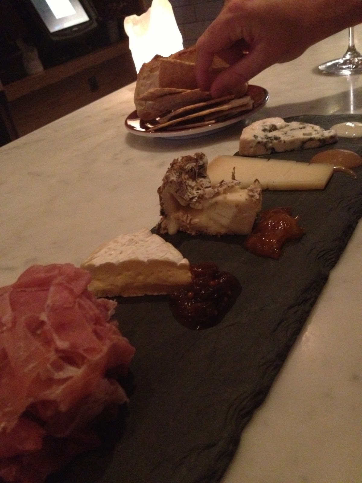 | Even though Murray’s Cheese is my favorite place ever, I had not yet tried their Cheese Bar – a restaurant next to their newly expanded West Village shop devoted to foods made with cheese. While plotting our next move one weekend, we slipped inside for a quick glass of wine. I should have known a visit to a cheese palace like this wouldn’t end with a glass of wine and it took all of two minutes before an order had been placed for a meat and cheese board. We went with the 5-piece Cheesemonger’s Choice. You can request all meats, all cheeses, or a mixture. We decided on four cheeses and one meat (prosciutto). The best part was that the waiter actually talked to us about what we wanted to see on our plate. Usually a cheese plate is a more generic, pre-selected package with simpler cheeses like a basic brie. I recalled a specific cheese I had seen in one of my Murray’s emails (yes, I receive the emails) and he said there would be no problem putting that on there. We then requested the spread have a mix of textures ranging from double cream to semi firm and include a stinky blue. Our waiter was a great listener and produced just that. Instead of having the accoutrements like jams haphazzardly sprinkled around the plate, each cheese was specifically paired with something. A double cream from my home state of Georgia went with pickled raisins while a sheeps milk gouda was meant to be eaten with caramel. |