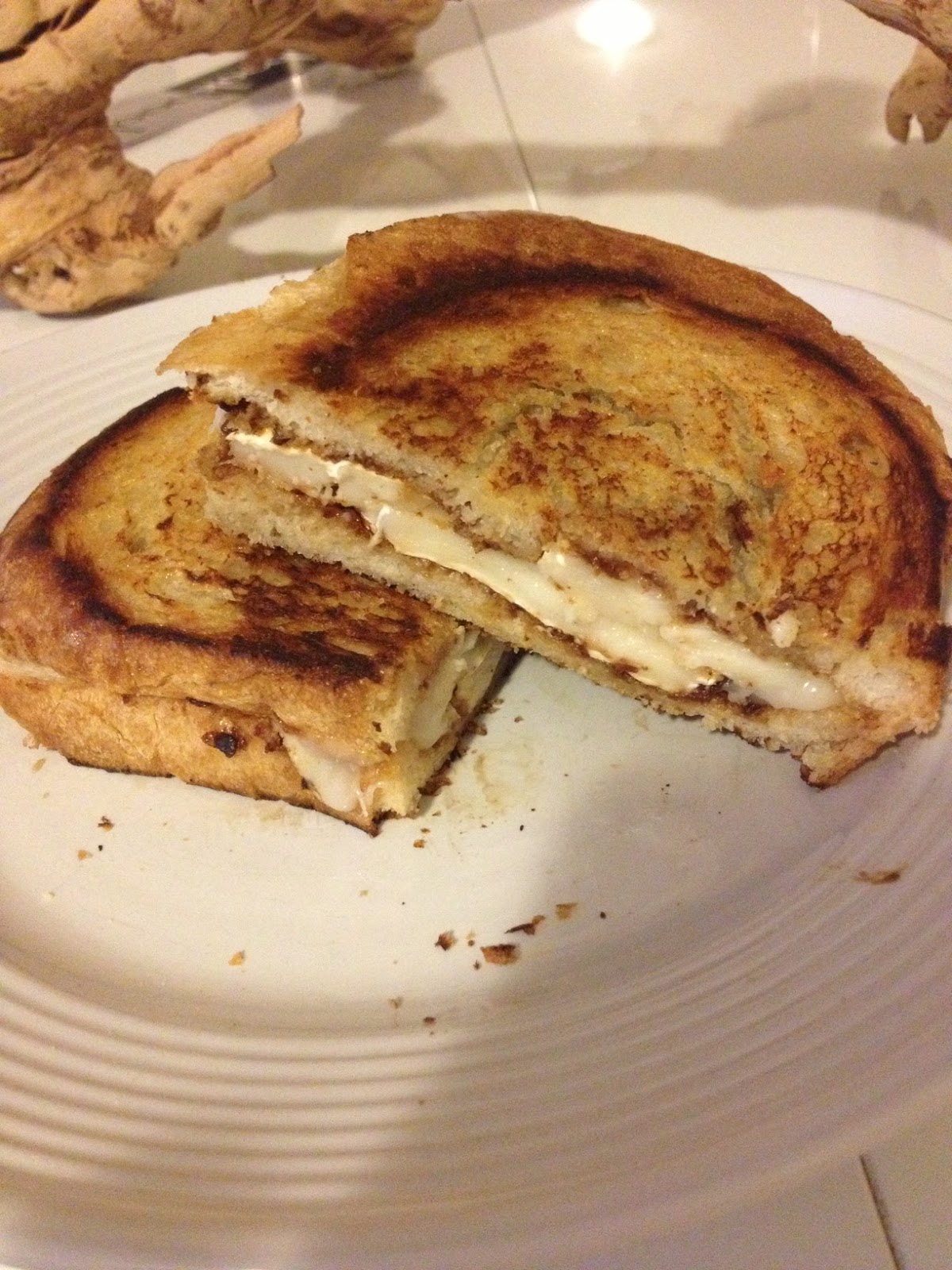 The answer came to me in the form of a goat’s milk brie. Still tangy from the goat’s milk but with all the smooth and mellow features of brie. Both sides of the sandwich were smeared with fig butter and then the goat’s milk brie went in the middle. I used sourdough because I like it so don’t push me for any additional rationale. I knew it would taste good and I was right. That’s all you need to know.