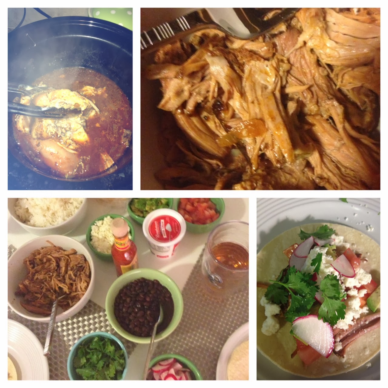 But this year was the year. I was so excited to finally have costumed children knock on my door that I wanted to make a little event out of it. I invited Albert over and we had taco night. He brought chips, queso, and Mexican beers while I made carnitas (pulled pork) in the slow cooker. I used this recipe as a base and made a few small tweaks like adding chopped onions and the juice of a lime. It really did fall off the bone in the most delicious way. It was the perfect recipe to cook because the crock pot did it’s magic while I was at work so I didn’t need to be in the kitchen when the kiddies came a knockin’. All I had to do when I got home was prep the fixins. For the side dish I threw some rice in the rice cooker and warmed up a can of black beans on the stove (adding salt, pepper, and my Mom’s secret, dried oregano). Then I filled lots of little bowls with taco toppers. Avocado, tomato, sour cream, hot sauce – those are all standard. There are a few more I highly recommend throwing out there to have a supreme taco bar: queso fresco (the white crumbly Mexican cheese), cilantro, and sliced radishes. If you serve those ingredients with mini corn tortillas, your tacos will seem way more authentic. Trust.