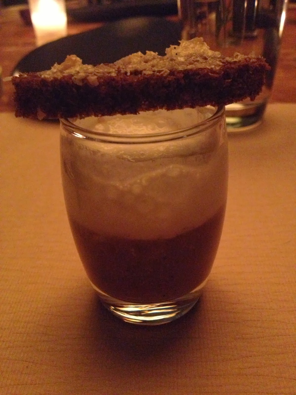 I need to stop talking about celebrities. Onto more important things: the food. I loved the amuse bouche – a mini french onion soup. It warmed us right up on the first really cold and windy night of the year. Everyone at the table started with the burrata…except me. Dare to be different. I got the grilled octopus with hibiscus romesco, potatoes, and pickled peppers. The spice came from the sauce and since that was sort of off to the side, you could dial the heat up or down to your liking. Sauce is something they do very well at Perry St. I went splitskies on two entrees with a fellow diner and both had amazing sauces that really made the dish. The first was grilled lamb chops with olive crumbs, black olive oil, and artichokes. I am not sure what the brushstroke of sauce was, but it was delicious. Brushstroke of genius. It toned down the saltiness of the olive crust so you could really appreciate how the chef had turned them into crumbs. The fried chicken was served with Brussels sprouts and a Brussels sprout puree. It was not too much sprouts for one plate. It was just enough. The chicken had a honey chipotle glaze, something I’m sure most diners will think is nouveau but that I recognize as a nod to how Southerners like to eat their fried chicken, with a drizzle of honey.