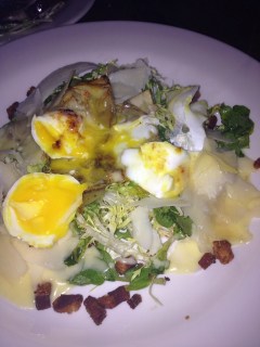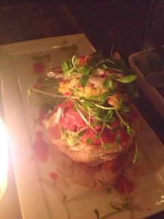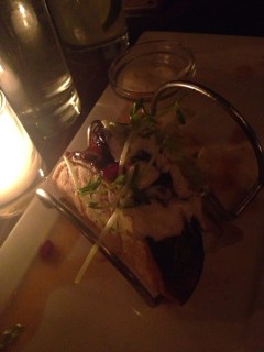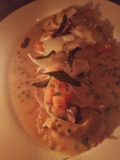 The menu isn’t necessarily made for sharing so I suppose that makes Steph, Brutus, and I three outlaws on a Friday night. We started with the roasted artichoke salad. With fresh shaved parmesan, pancetta, and a poached egg, it was pretty much everything I wanted in a salad. It was my favorite dish of the evening, but the other dishes we also very tasty. The description for the tuna tartare tart led me to believe there would be too many ingredients on the plate, but thankfully there was plenty of tuna among the puff pastry, pea sprouts, and mango. The short rib tacos were far more filling than a typical appetizer taco, which means there was actually meat inside, not just a teeny tiny taco shell requiring a magnifying glass. Finally we shared the butternut squash ravioli. It was good but just a tad too sweet for me. The service was a bit spotty, but when you’re three gals out on a Friday night, it’s hard to be bothered.