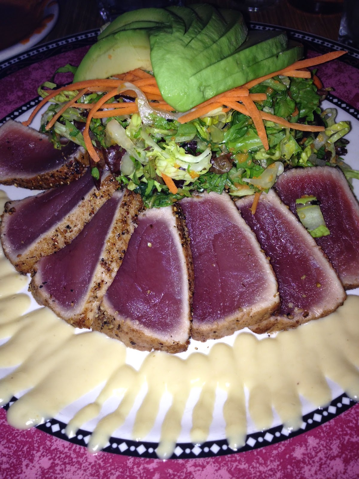 We settled on Citrus, sister to nearby standby Josies for some Asian/Mexican fusion. Though it’s billed as fusion, the menu items were either Mexican or Asian, with a few continental classics like roast chicken thrown in for good measure. I got my Mexican fill with the complimentary chips and salsa. The salsa was creamy and addictive. I veered Asian for my entrée of mesclun salad with seaweed, avocado, edamame, seared tuna, and miso carrot sesame vinaigrette. My salad was filling with ample amounts of the ingredients you really care about (avocado and seared tuna, obvi). I made sure to mix in the wasabi mayo garnish and thought it worked well to spice up the sweetness of the dressing.