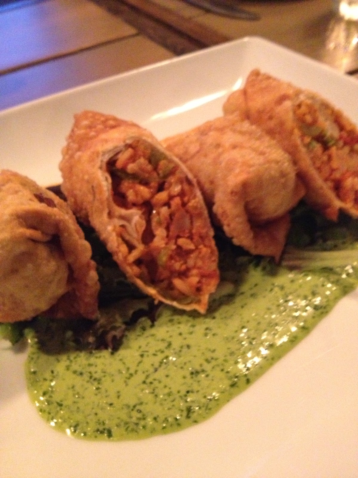 How does Brian make such wonderful cheesecake? Because he’s Brooklyn born and bred. Aha! Now it all makes sense. Naturally, I would love any restaurant that combines the flavors and vibe of the Lowcountry and NYC. My entire adult life has been spent straddling those two areas so of course I would love seeing them combine in one place. The menu pulls inspiration from both areas, whether it’s the pernil to reflect Brian’s Puerto Rican heritage or the pulled pork over gruyere cheese grits to pay homage to the South. Mark and Allison insisted we start with the yuca and chorizo since they had tried [and loved] it before. I, too, was a fan and found the yuca to be sufficiently fried but still light enough to pop pop pop in my mouth. My preferred starter, however, was the Spanish rice eggrolls. It was so simple: just an eggroll stuffed with red rice and served with an aioli but there was plenty of flavor and I loved the crunch of the eggroll skin giving way to thick, fluffy rice. I had been snacking all day so for my main course I just had the stuffed avoacado. The avocado was filled with a mound of chopped onions and tomatoes that spent a full day marinating in a citrus dressing, ceviche style. It was nothing fancy but perfectly done and refreshing a midst the Savannah humidity. That pulled pork and grits I mentioned earlier? I tried a bite and loved it. The grits were so rich and creamy it was like eating mac and cheese. I also tasted a scallop special that was served with a pineapple curry potato (or yuca?) mash. I don’t know how to explain that flavor. I’m sure it’s not for everyone (curry never is), but if you like island flavors like I do it’s a very good dish.