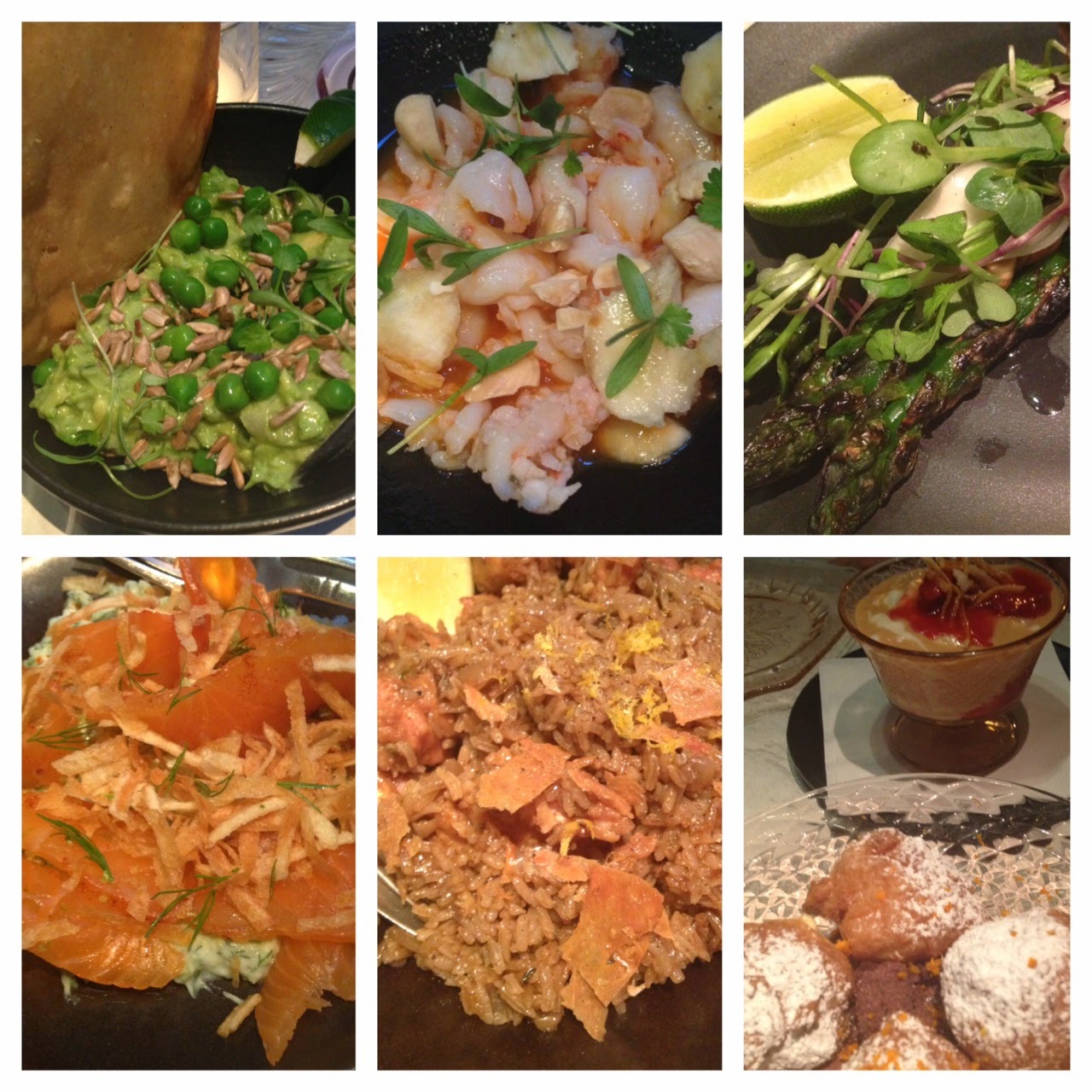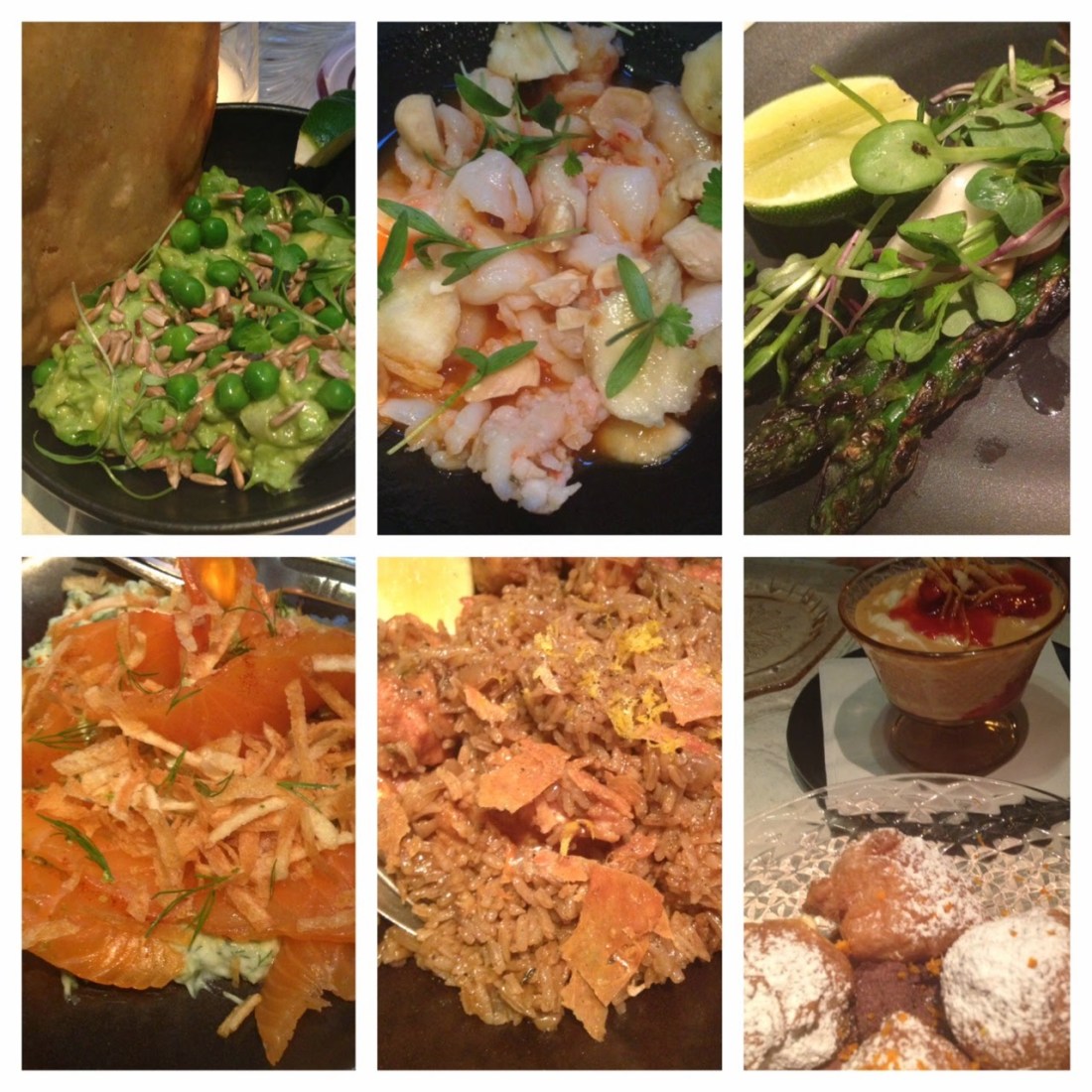 The guac was still primarily avocado, but small touches like pea shoots and sunflower seeds made it better without alienating guacamole purists. The salmon was also wonderful. Not too salty and the extra yogurt was a great dip for the leftover tortilla chips. Our spirit guide next told us to order the shrimp in “agua diablo”. It was a spicy ceviche style dish with the most interesting addition of banana. It’s just such a crazy pairing that it works (I think because it was just a touch of banana). For our next dish we went with something our waiter did not directly point out – how dare we! Thankfully, the calamari with ancho chili glaze (not pictured) was still a winner for our table. That’s definitely because the glaze had something like blackberries in it. It didn’t drench the squid and was enough to make a believer out of me, a gal who prefers not to order calamari as often since it’s served just about everywhere. Back on track with our waiter’s recos we ordered the arroz con pollo, served family style like paella. It takes 40 minutes to prepare so I suggest you put your order in when you sit down because it is the perfect dish to break up all the other tapas items. The next round of dishes consisted of tacos (crispy fish and short rib – not pictured) and asparagus. All were delicious though the asparagus felt a bit small. I also thought the short rib tacos had some extra unnecessary spice. For dessert the waiter told us not to order the “impossible” flan, as intrigued as I was. He said it was the worst one on the menu and instead suggested the vanilla fritters and rice pudding. He had been right throughout the whole meal so we stuck with him for dessert. I didn’t think the fritters were anything special (like a more liquid profiterole), but the rice pudding with raspberry preserves and (I think) candied orange peel was great. I was pretty shocked by how much I liked it since I’m not really a rice pudding person. I think I said the same thing about ABC Kitchen’s sundae so I continue to be surprised by the ABC desserts. Surprise is almost always a good thing when it comes to dining.
