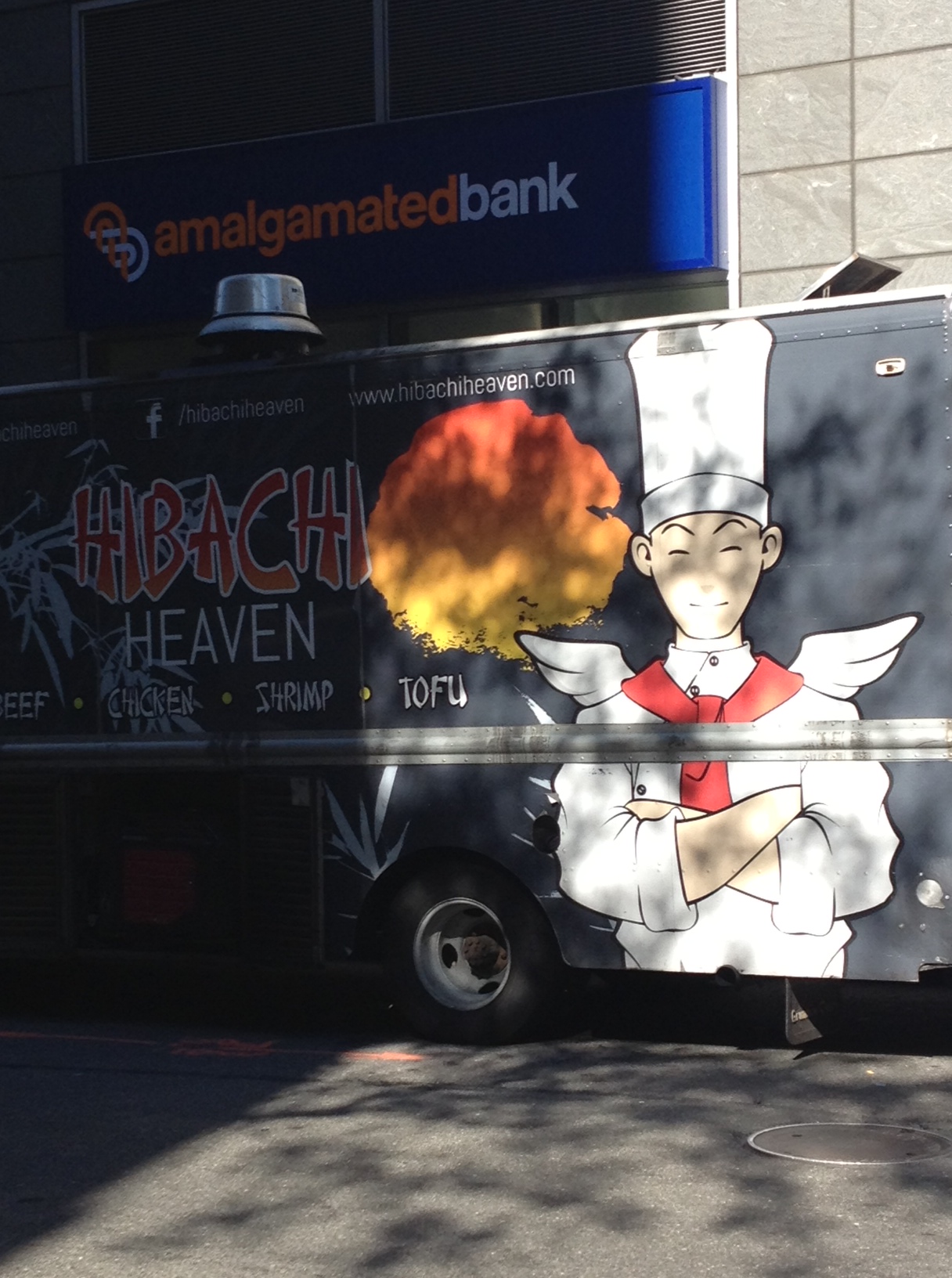A major hole has been filled. If you wanted hibachi in NYC your only option was Benihana. Yummy, but it’s a whole sit down process and definitely on the more expensive side. And if you wanted takeout style hibachi (like my beloved Hiawa’s in Savannah or Inoko Express in Athens), you were completely out of luck. Thankfully a food truck has arrived on the scene to save us all.