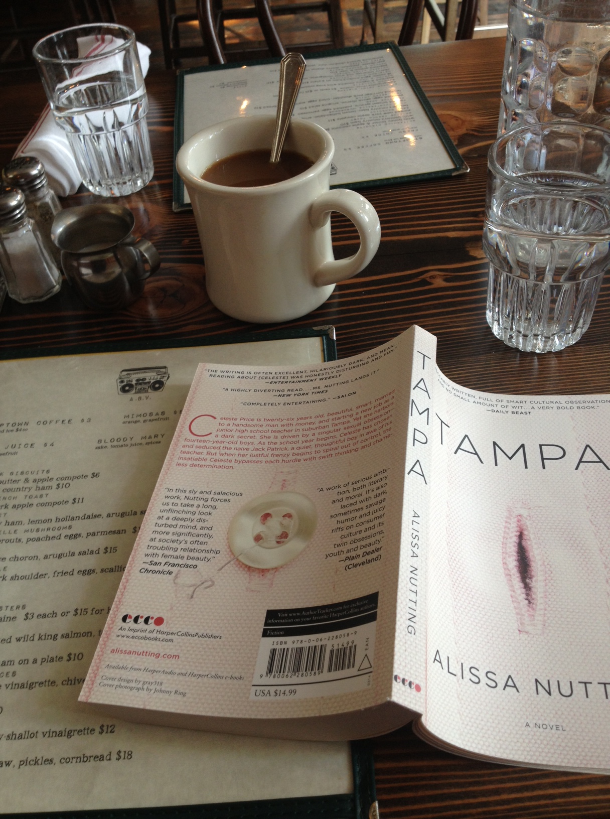 ABV has a great downtown vibe all the way up on 97th and Lex. There’s exposed brick, an open kitchen, and light fixtures filled with filament bulbs. The focus is on wine, but they have a great beer selection and food to match. They also have my fave Stumptown coffee and since I arrived about 25 minutes early, I was able to enjoy two cups and some solitude while the light streamed through the large front windows. Very important to note: they gave free refills…on Stumptown. That never happens!