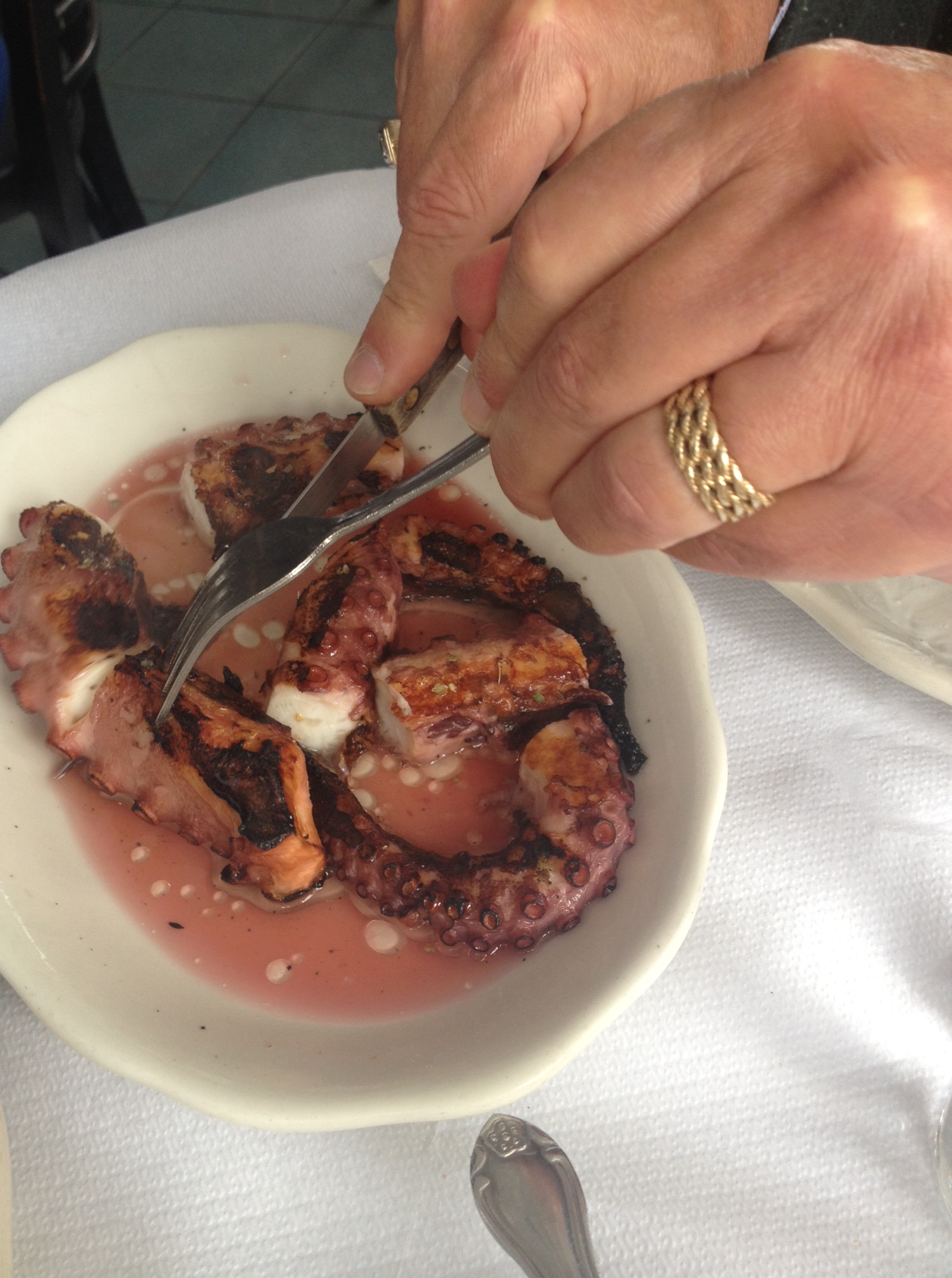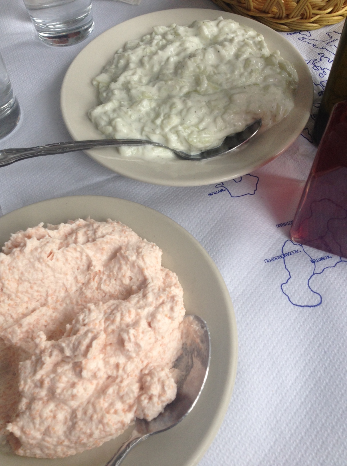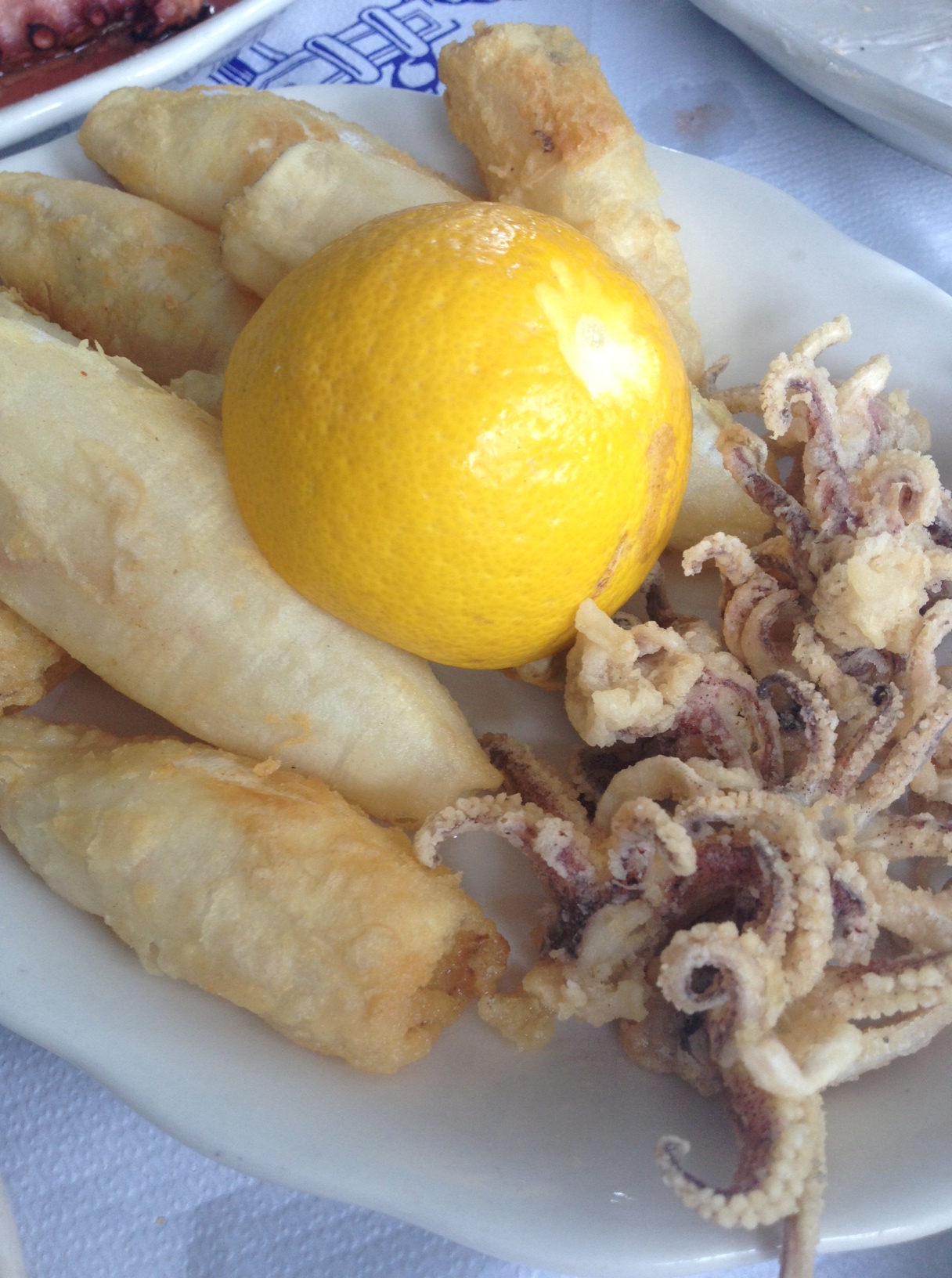 If you are a seafood eater, this is perfect for you because the fish is super fresh and prepared very simply. We ordered tzatziki and taramosalata with grilled bread to start. Then it was time for the fish. We ordered grilled octopus (nice and tender), fried calamari (in a very light batter), grilled shrimp, and branzini. It was all light and delicious. The branzini was my favorite and tasted like they brought it in from the docks just before we walked in the door. My parents went to Greece ten years ago and my father kept saying how this took him right back to the tavernas. Another reminder that this place is old school: it’s cash only so don’t forget to bring those dolla bills.