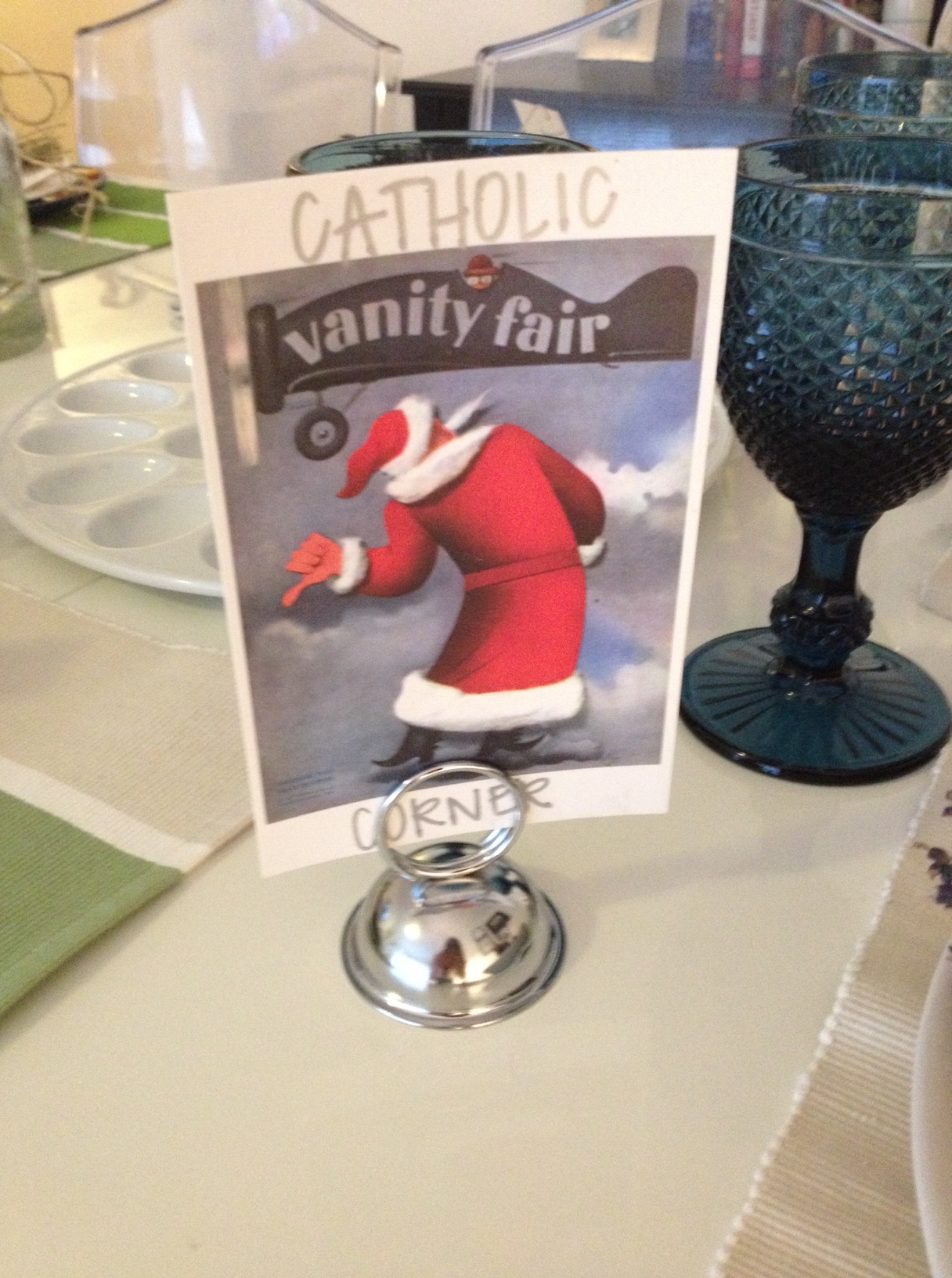 When I sent out my email invite for Passover, Albert made a joke that he and Kathleen would be chillin in the Catholic corner…so I played into it and made their section of the table the official Catholic Corner. It was very important for me to maintain the Passover seder tradition and part of that is being inclusive of friends/boyfriends of other religions. It’s all about being inclusive and bringing some levity to the situation.
