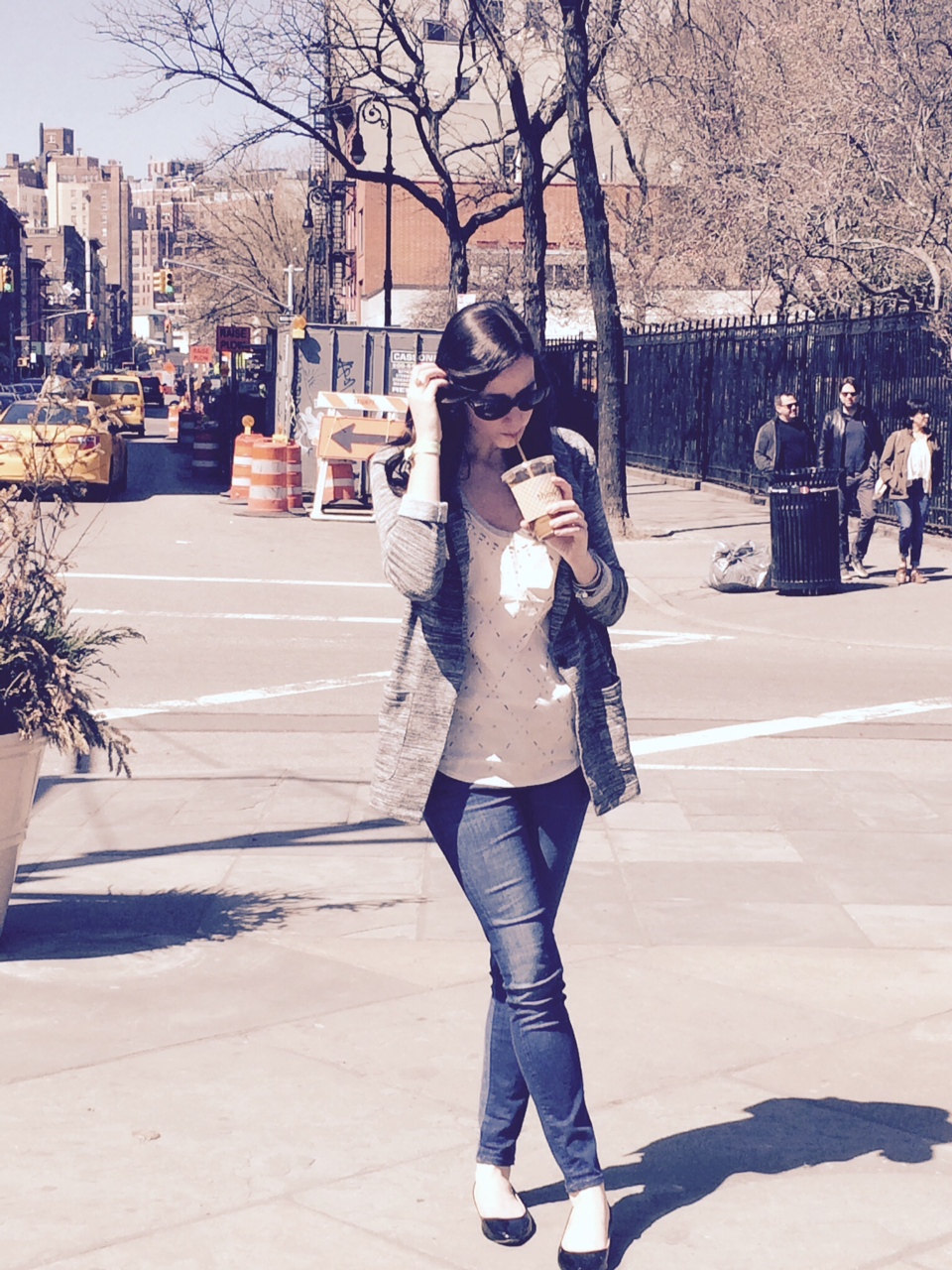 The weather is finally spring-like, which means all anyone wants to do is brunch outside. Not all brunches have to be boozy, party dress affairs. This Sunday it was all about strolling the West Village with a stop at the first place we could find with cute outdoor seating, which happened to be Olio e Piu. It’s an Italian café that feels particularly casual and breezy if you’re sitting outside. You want to look put together (you’re in the West Village, after all) but not like you’re dressing to seriously impress.