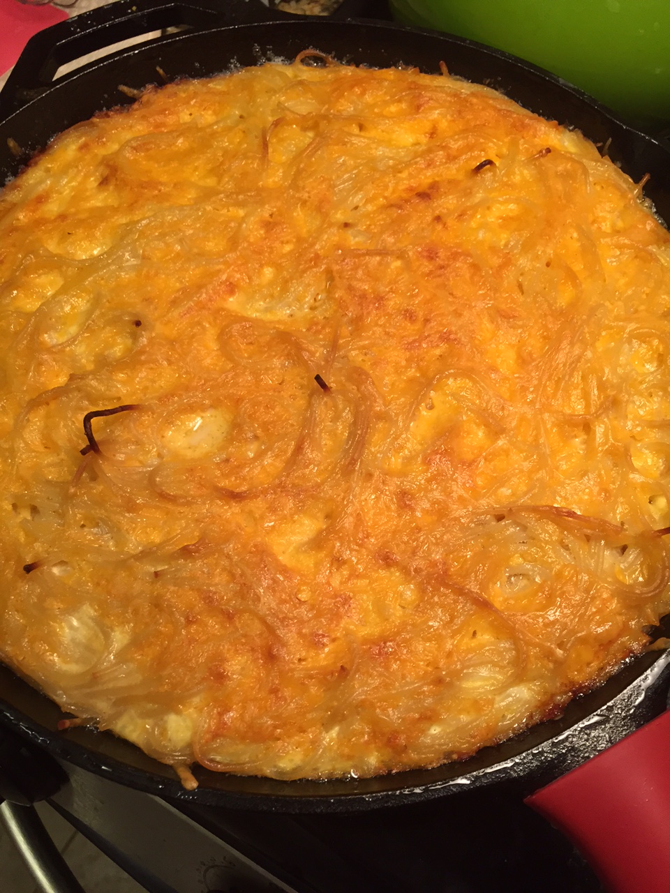 The first recipe I tried out was spaghetti pie. Basically, it’s mac and cheese but made with spaghetti. I followed this recipe and it came out perfectly. Some recipe notes: