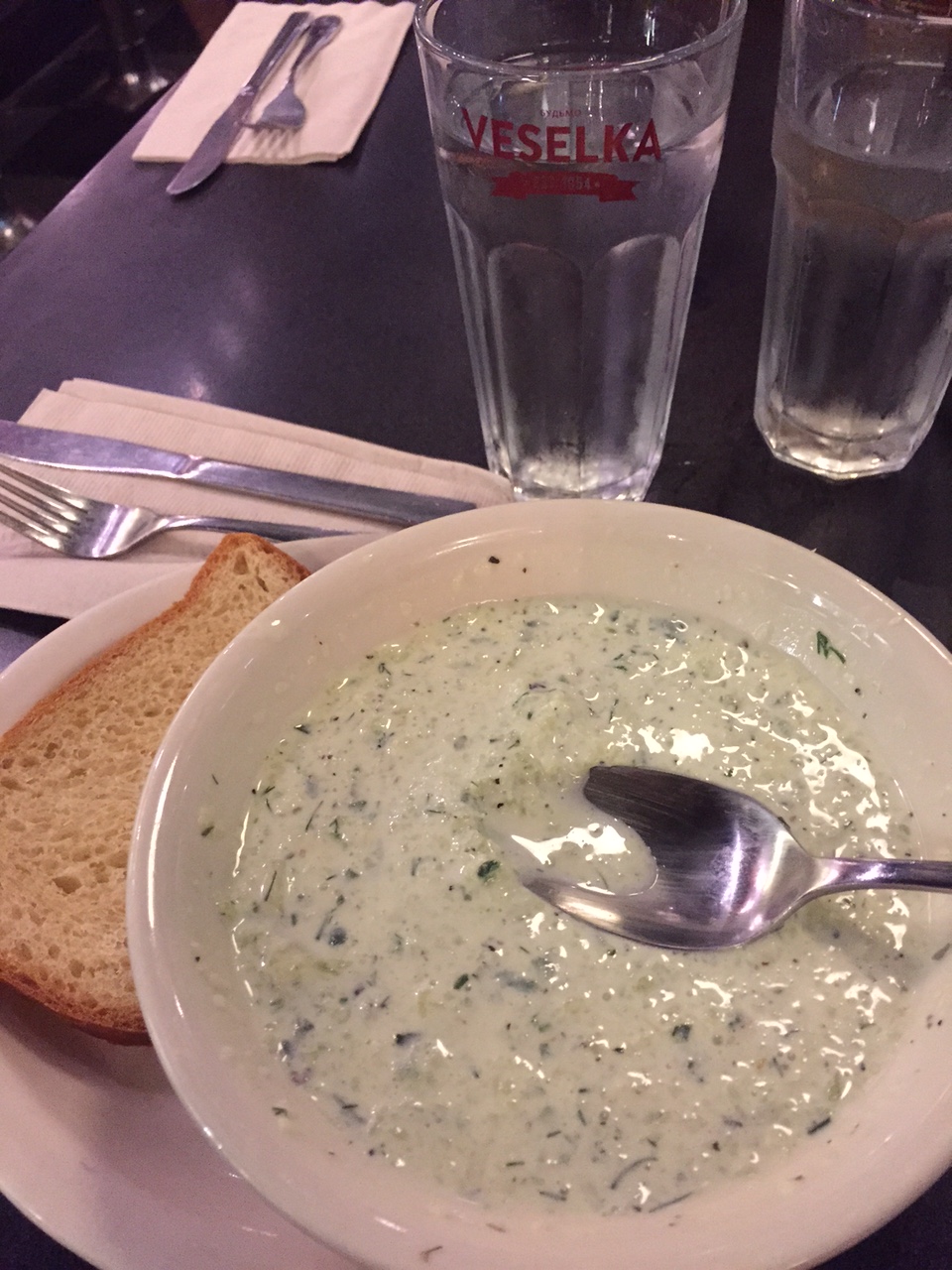 Veselka is one of my favorite restaurants all year round. On one hand, I love going in the winter because the hearty comfort food is so nice when it’s cold out. On the other hand, I pretty much wait all year til they start selling their summer special cold cucumber soup. Albert and I planned a dinner + movie date night last Wednesday and I spent three straight days anticipating this soup. It was as good as I remembered.
