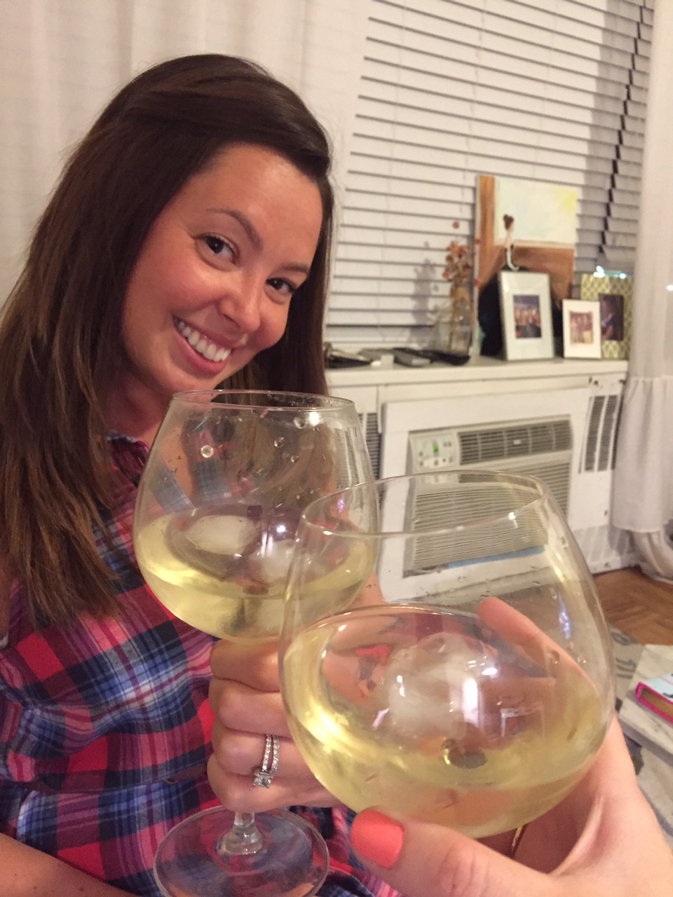 Kathleen came over for some vino on a recent Friday. Originally I thought maybe we would hit up the bars…but we ended up not leaving the couch where we gossiped and watched the pilot of SATC. And, yes, there are ice cubes in our white wine. Because we’re classy like that.