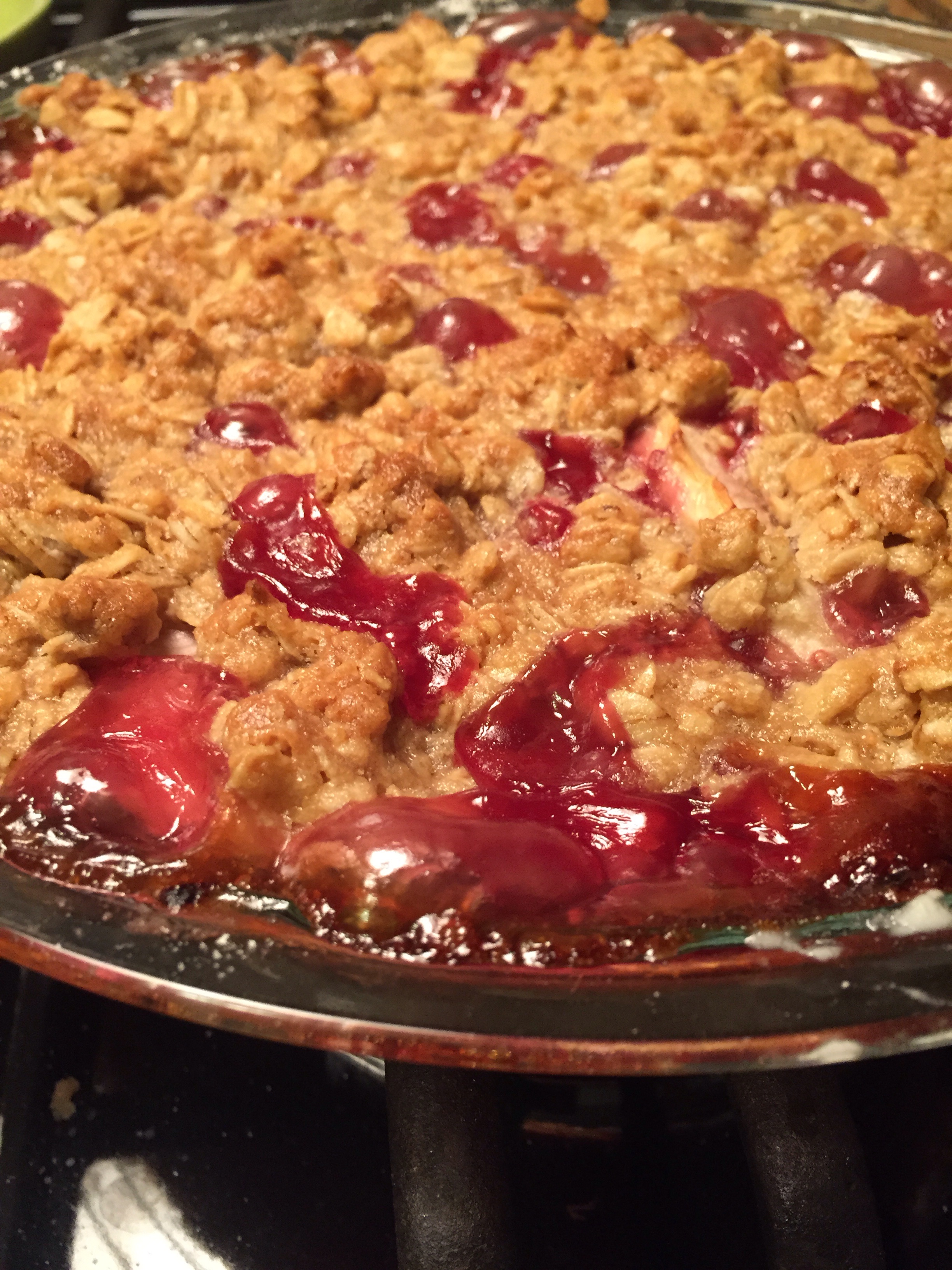 As you may recall, one of my main Labor Day weekend goals was to try a new recipe, preferably a fruit crisp. There are some fruits that are just SO summerific. Fruit, to me, seems very seasonally dependent. We eat avocados and brussels sprouts all year long, but when fruit is out of season it’s almost pointless to buy. A peach, for instance, is just not as juicy and flavorful in December. Sorry, but it’s the truth.