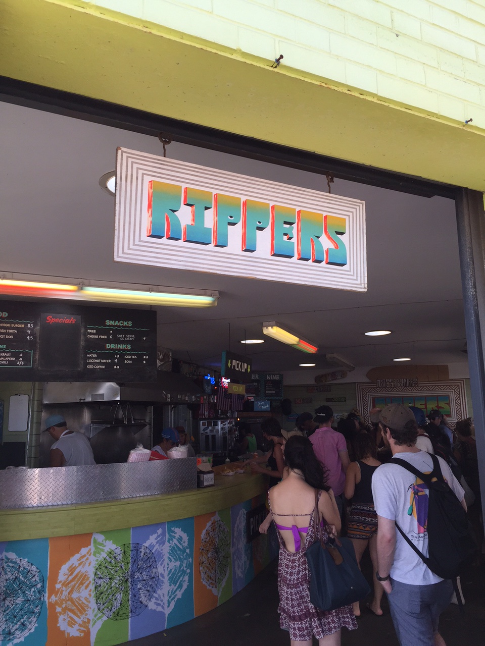 Help! The hipsters are invading Queens! That’s certainly what it feels like when you walk up to Rippers at the end of Rockaway Beach. It’s a throwback style surf shack with lots of neon. The clientele with their ironic Flock of Seagulls haircuts look straight out of Brooklyn. And that’s because they are. Apparently there’s a party bus that for $20 roundtrip will take you from Williamsburg to Rockaway and give you beers for the ride. I’m sure it helps that the owners of Rippers are the same guys who own Robertas, the Brooklyn pizza hot spot.