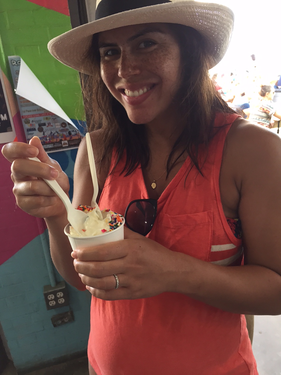 All burgers come on a potato bun with lettuce, pickles, onion, and special sauce. I 86’d the onion, made mine a cheeseburger, and added avocado. Though the meat itself was a little overcooked (or maybe lacking some seasoning?) as a whole, it was a good burger, And as far as beach burgers go, it was great. Burgers on the beach usually only taste good because you’re happy to be on a beach, which is why this one felt exceptional. They also have soft serve that I thought tasted way more like ice cream than froyo (thicker, custardy-er) and that’s a good thing. Karina got a scoop of the honey flavor with sprinkles in a cup because the cashier warned us that the cones were janky. I appreciated her honesty and appreciated the soft serve.