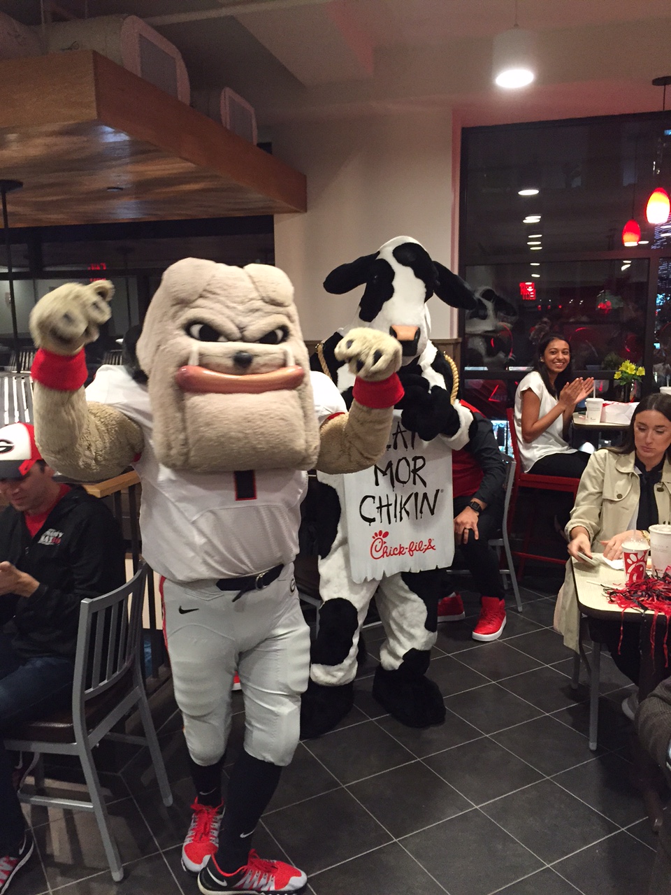 New York finally has its first Chick-fil-A! Even better: it’s on my street, just a few avenues over. This is life-changing. The folks at Chick-fil-A were kind enough to host a special event for UGA alumni two days before the opening. We sold all 500 tickets in 15 minutes, and I’m sure none of them were disappointed. They had arranged for a live band, a hype guy, and all the Chick-fil-A we could eat. Hairy Dawg even made an appearance! That’s enough of a celeb sighting to get me starstruck.