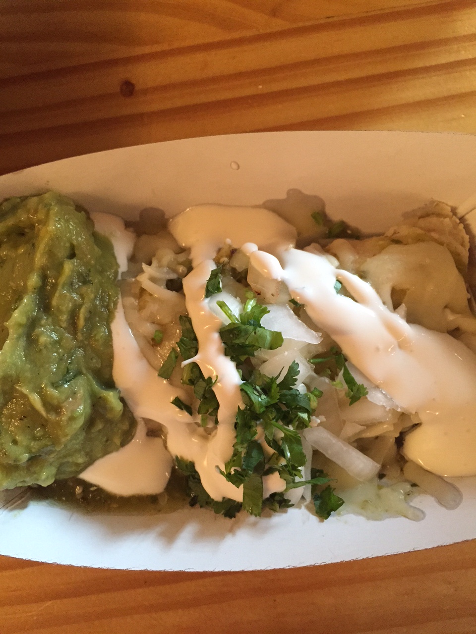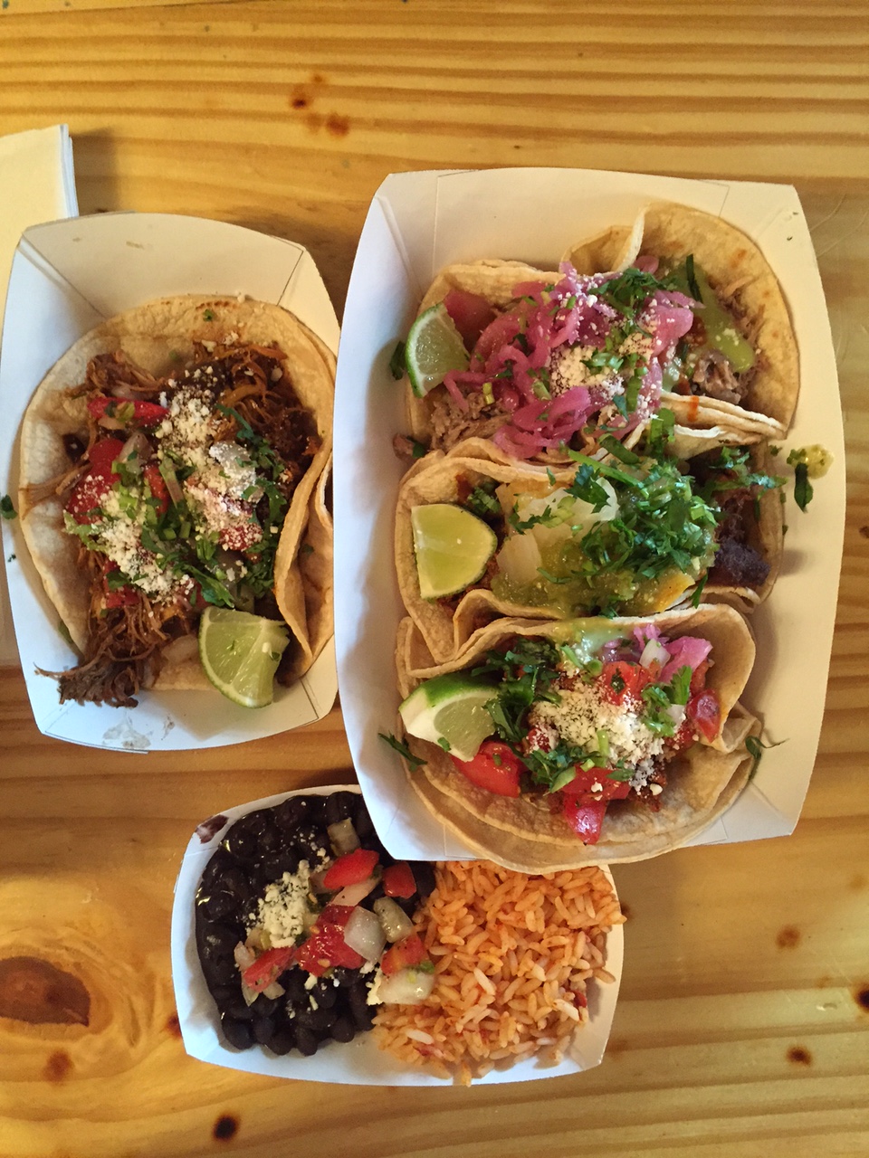 The tacos are packed with meat so they are deceptively filling. I took to eating the taco with only one of the two tortillas they wrapped it with, using the second for meat spillover. We tried the al pastor, chorizo, carnitas, and special chicken mole varieties. All were great, but if I had to choose, I would probably favor the chicken mole or the carnitas. I also really liked the chicken enchilada, which came with tons of sloppy sour cream and guac.